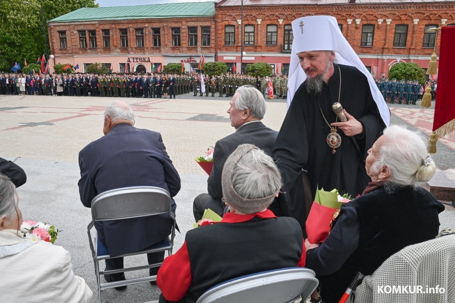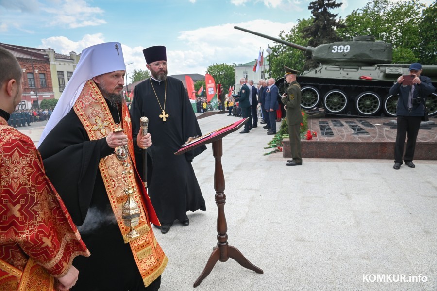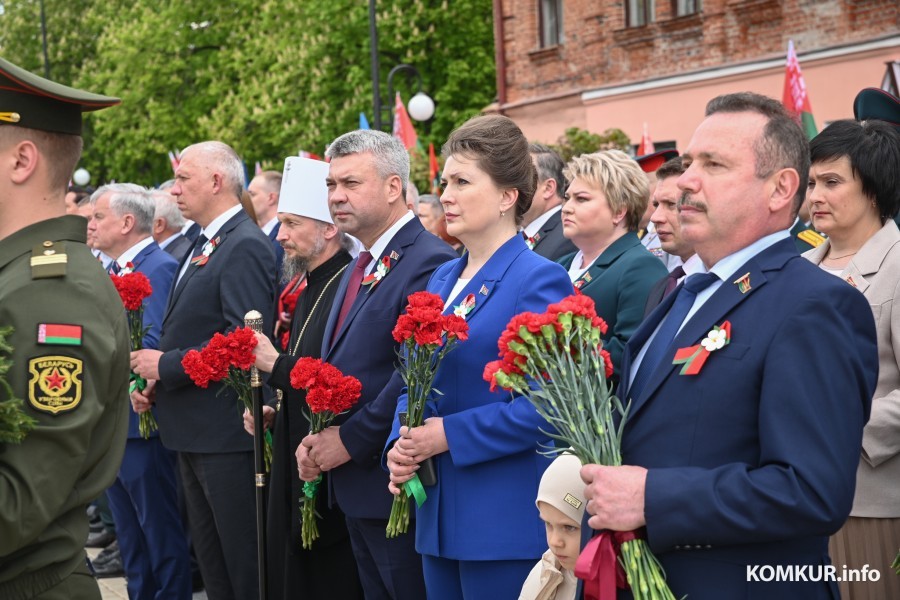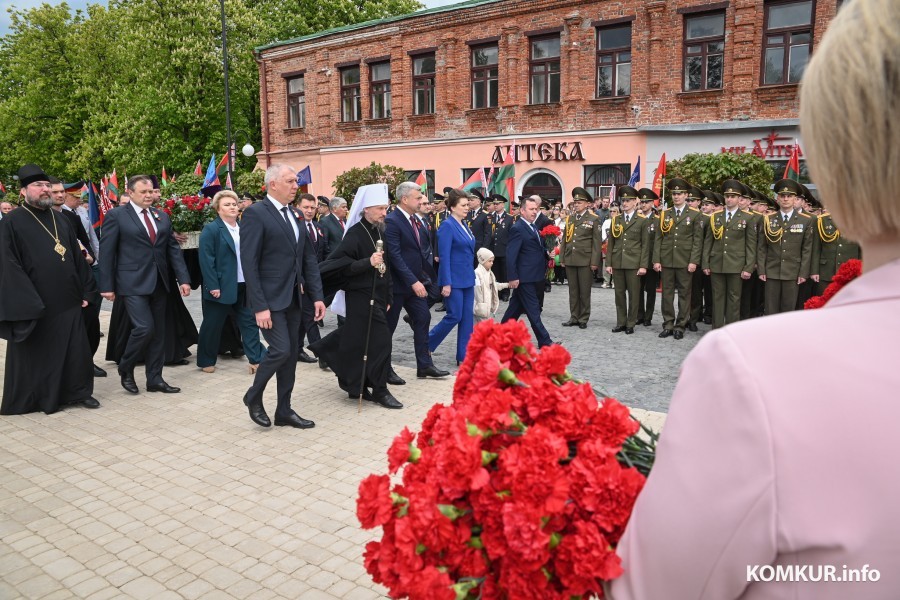 Церемония открытия обновленной площади Победы получилась праздничной и статусной. Среди гостей в Бобруйск приехали Патриарший Экзарх всея Беларуси Вениамин, заместитель председателя Могилевского облисполкома Олег Стельмашок, первый заместитель министра по чрезвычайным ситуациям Александр Худолеев, председатель правления «Беларусбанка» Виктор Ананич, депутаты Палаты Представителей, гости из городов-побратимов Российской Федерации.
