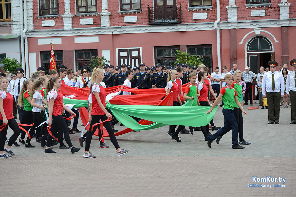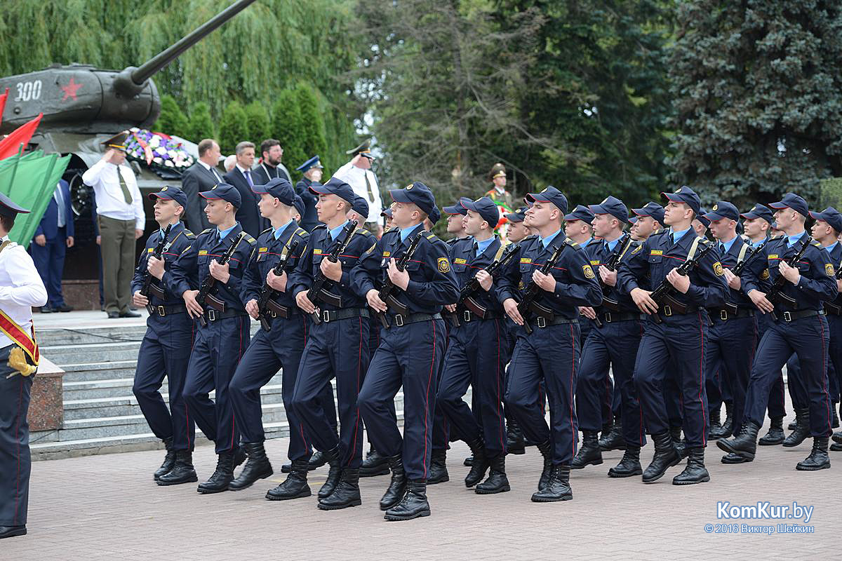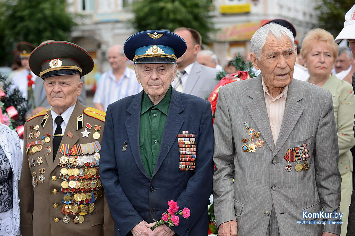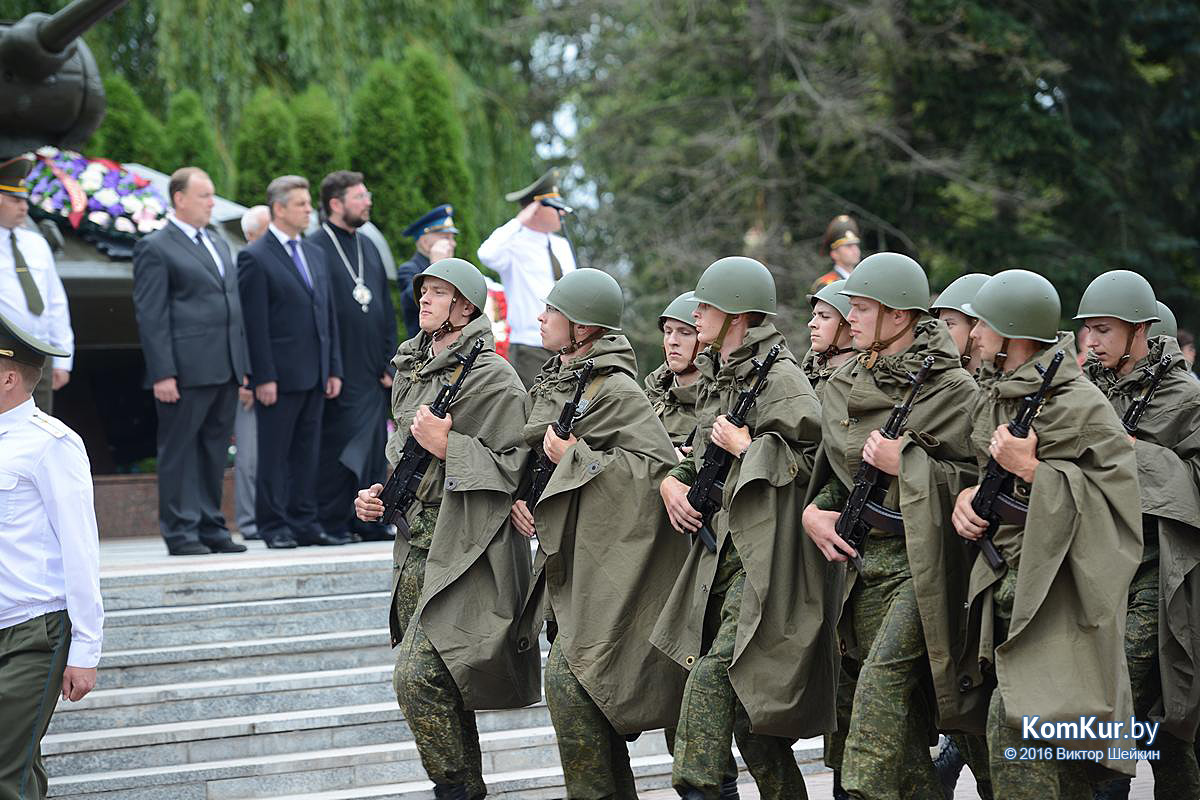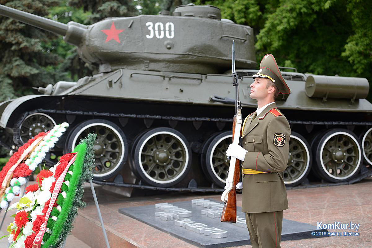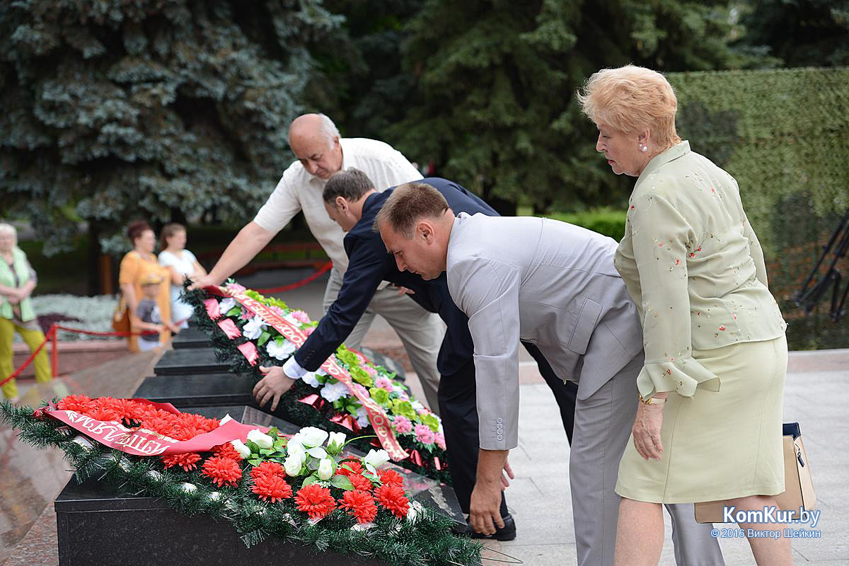 Начался праздник у мемориала воинам-освободителям на улице Минской. Председатель Бобруйского горисполкома Андрей Викторович Коваленко, первый заместитель председателя Олег Валериевич Ковель, заместитель председателя Александр Васильевич Маркачев, глава администрации Ленинского района Александр Николаевич Лисовский, глава администрации Первомайского района Юрий Станиславович Хилинский, председатель Бобруйского городского совета депутатов Михаил Викторович Желудов, а также ветераны войны и труда, военные, представители трудовых коллективов возложили цветы и венки.