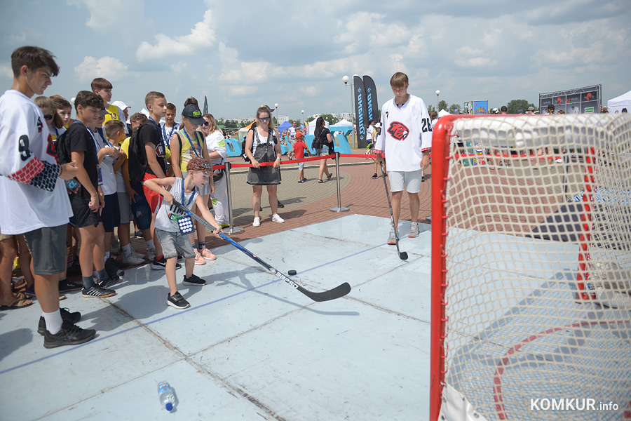 Фестиваль «Вытокі» – культурно-спортивный. И его спортивная составляющая представлена широко и разнообразно. На обширной хоккейной зоне можно примерить форму, сыграть на мини-площадке и забросить шайбу в настоящие ворота. На других площадках – пострелять из лука, поиграть в волейбол, потягать гирю, покрутить хула-хуп, попрыгать на скакалке.