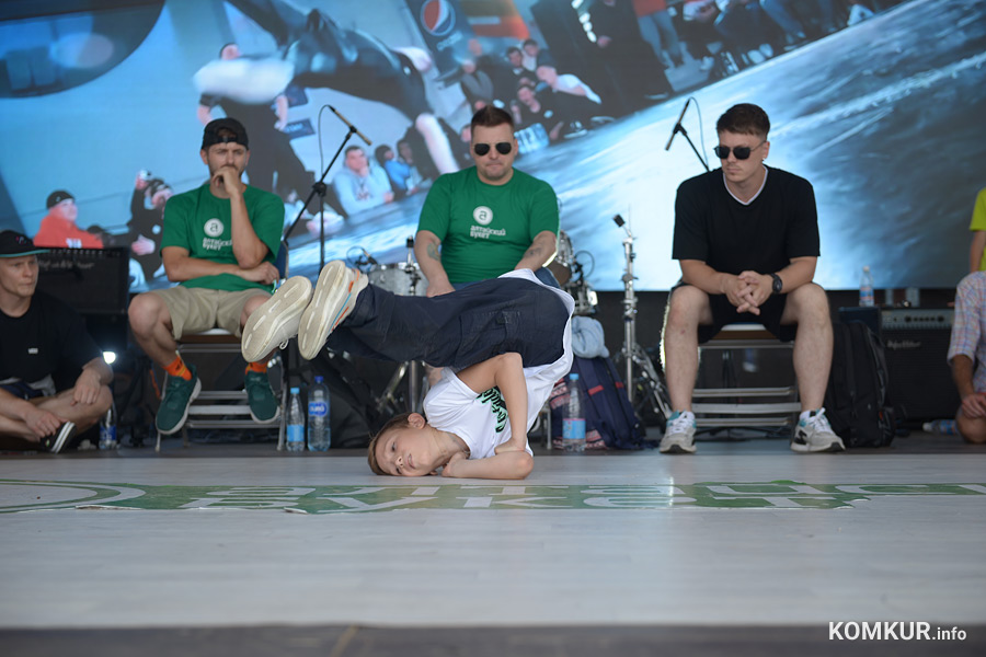 На площадке для брейк-данса и прямо на сцене малыши и подростки крутят танцевальные вертушки.