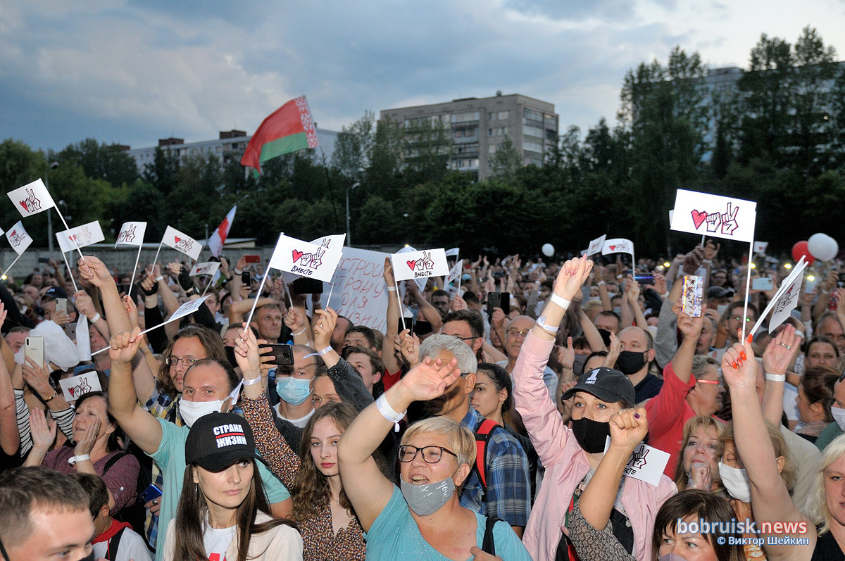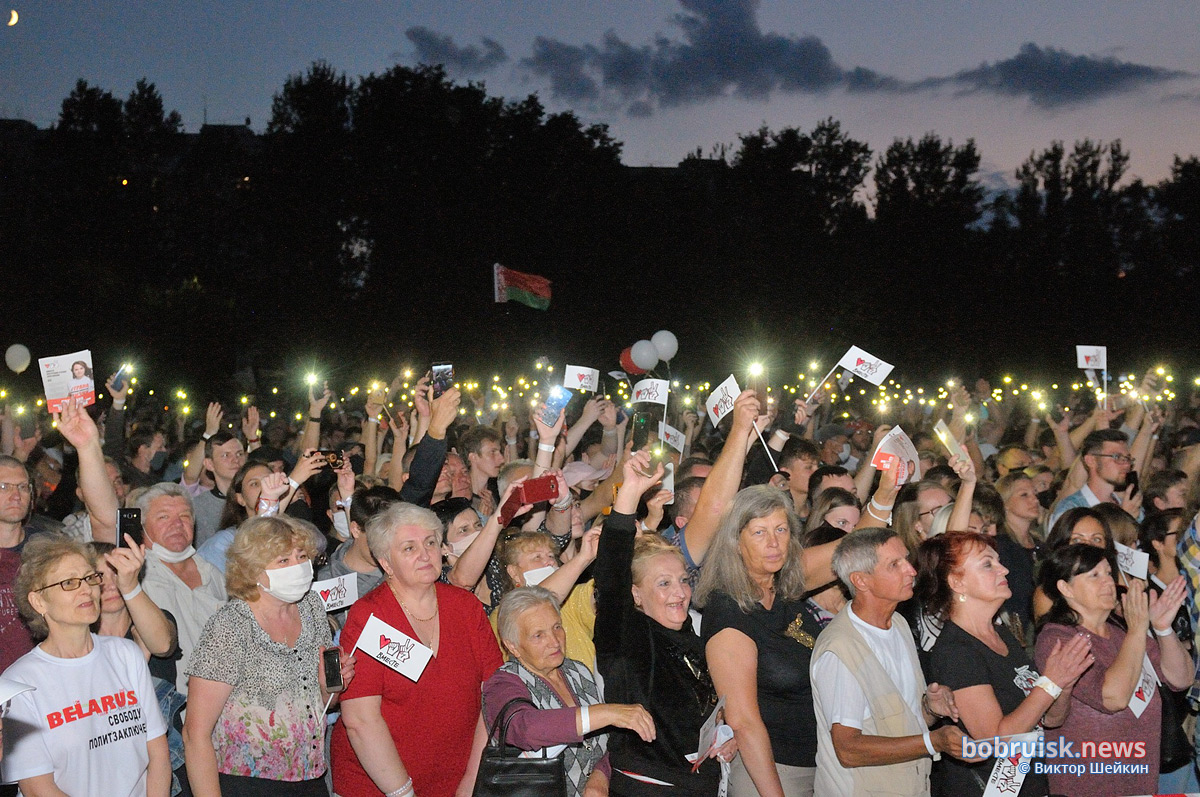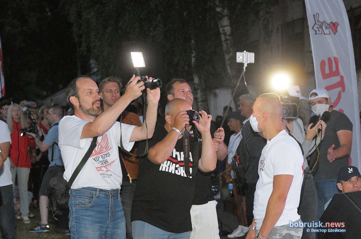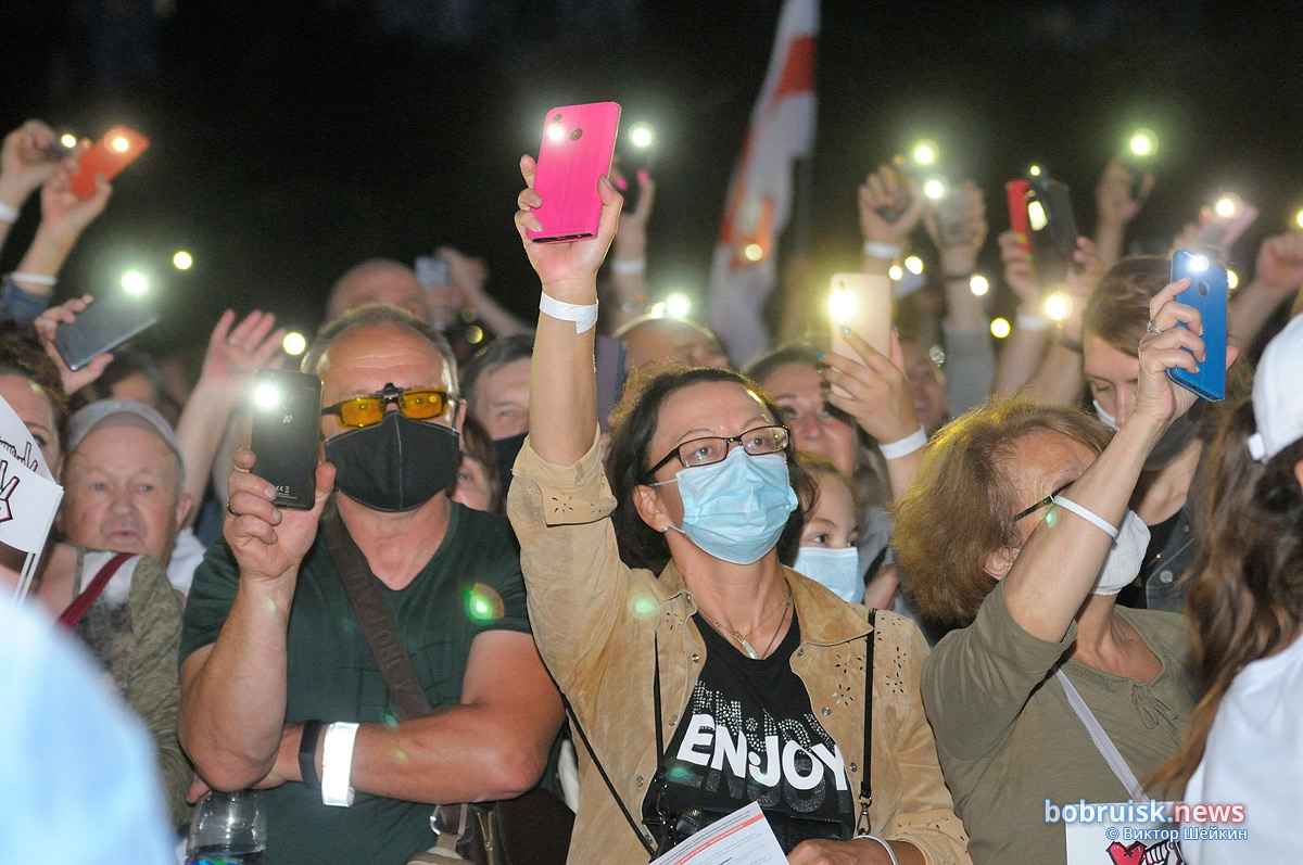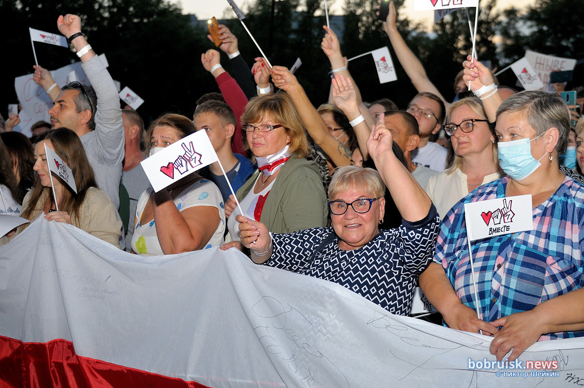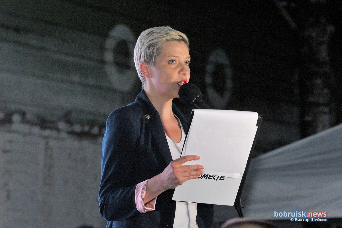 Встреча с бобруйчанами прошла в субботу, 25 июля, на стадионе «Славянки». Вместе со Светланой Тихановской приехали представительницы поддержавших ее штабов: Вероника Цепкало (супруга экс-претендента на высший государственный пост Валерия Цепкало) и Мария Колесникова (представитель штаба другого не утвержденного претендента – Виктора Бабарико).