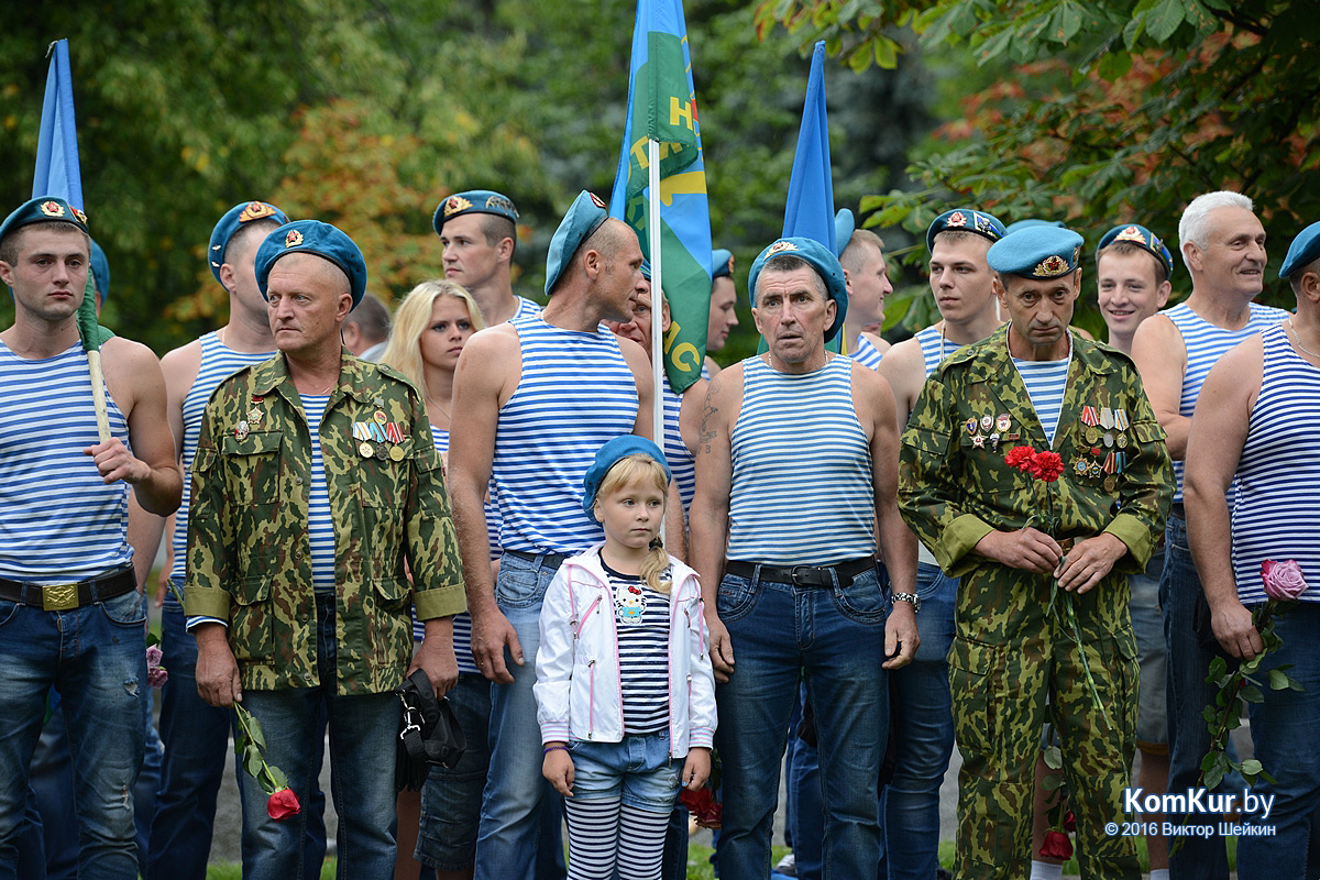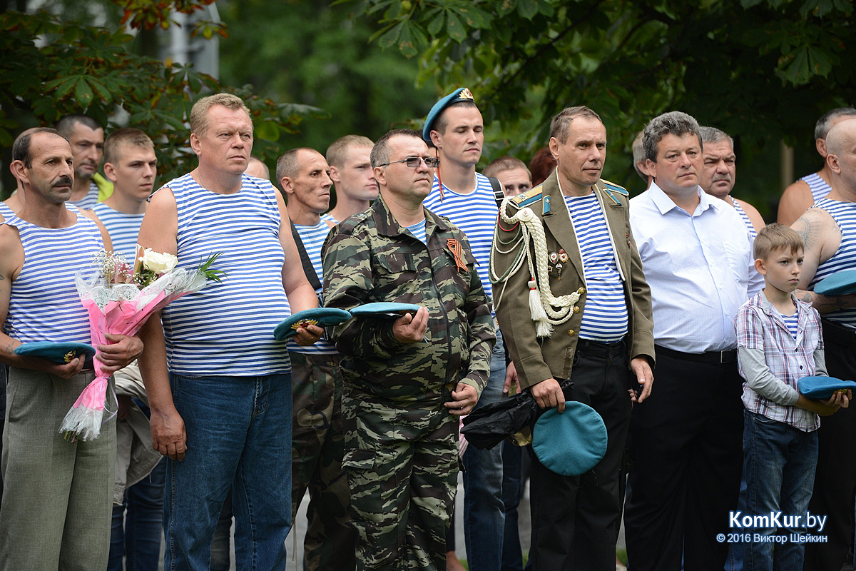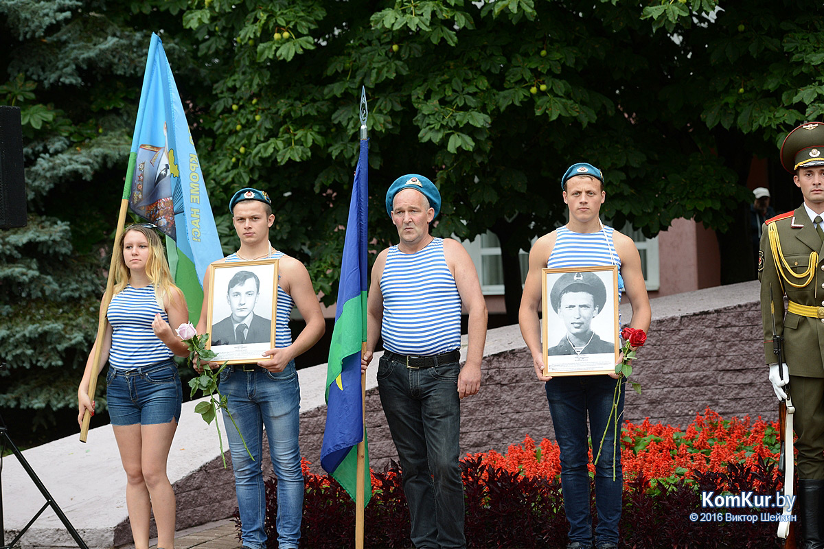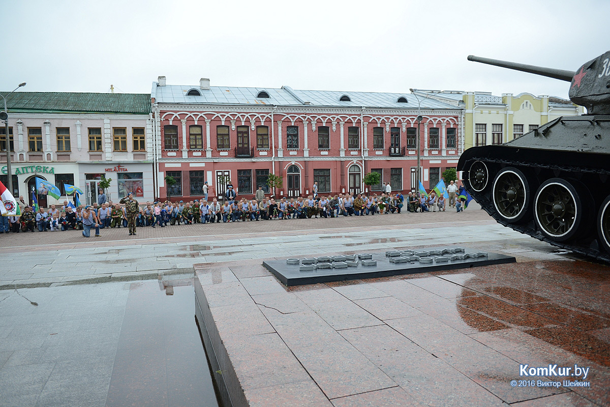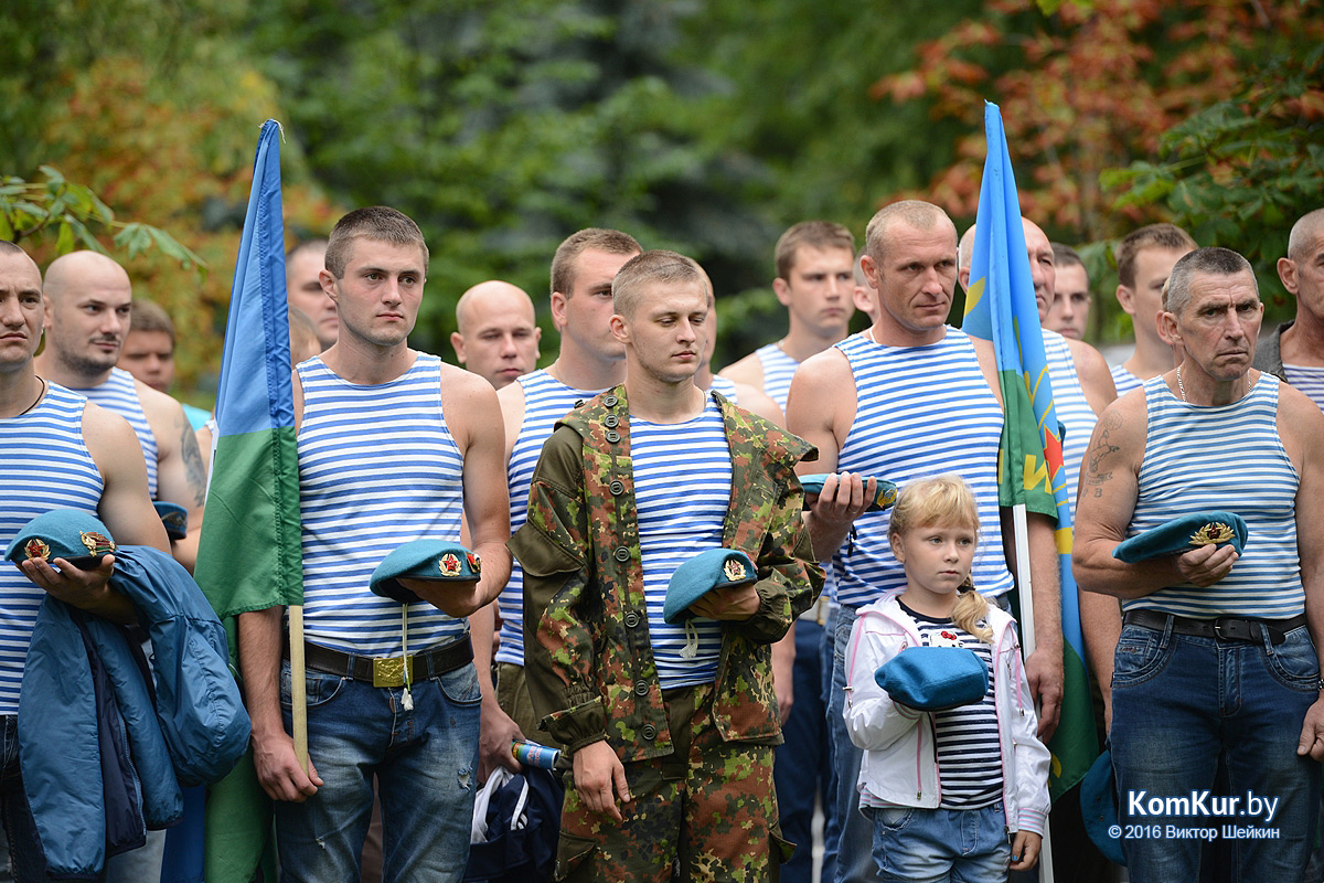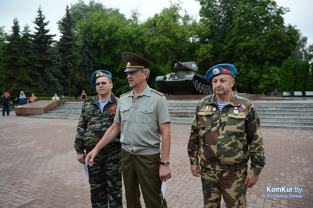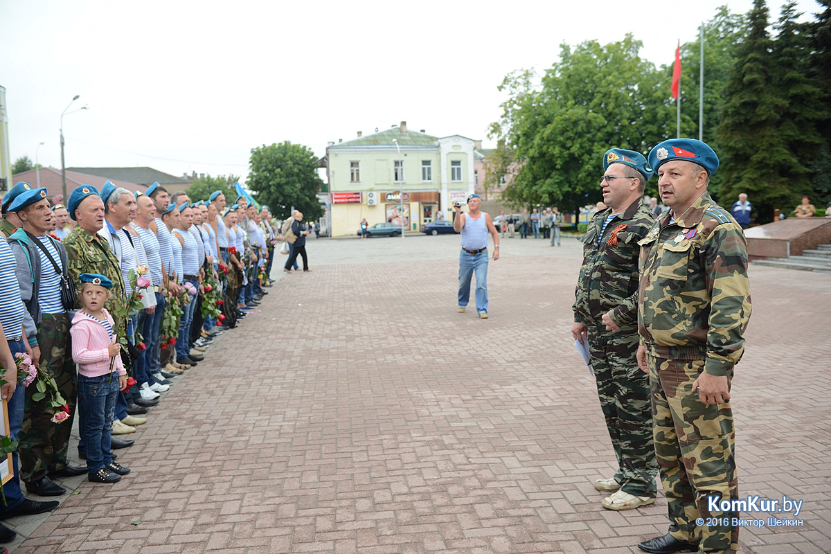 В 10 часов около сотни бойцов от убеленных сединами воинов-интернационалистов и до безусых парней стали в строй на площади Победы, чтобы возложить цветы защитникам Отечества в годы Великой Отечественной войны. После этого десантники отправились к памятнику воинам-интернационалистам на улице Социалистической, где прошел митинг, посвященный празднованию Дня ВДВ и ССО. Мужчин в тельняшках поздравил председатель БГООО «Белорусского союза ветеранов войны в Афганистане» Валерий Лебеденко:
