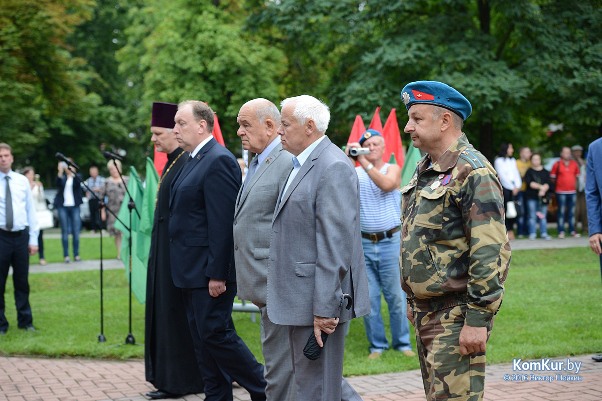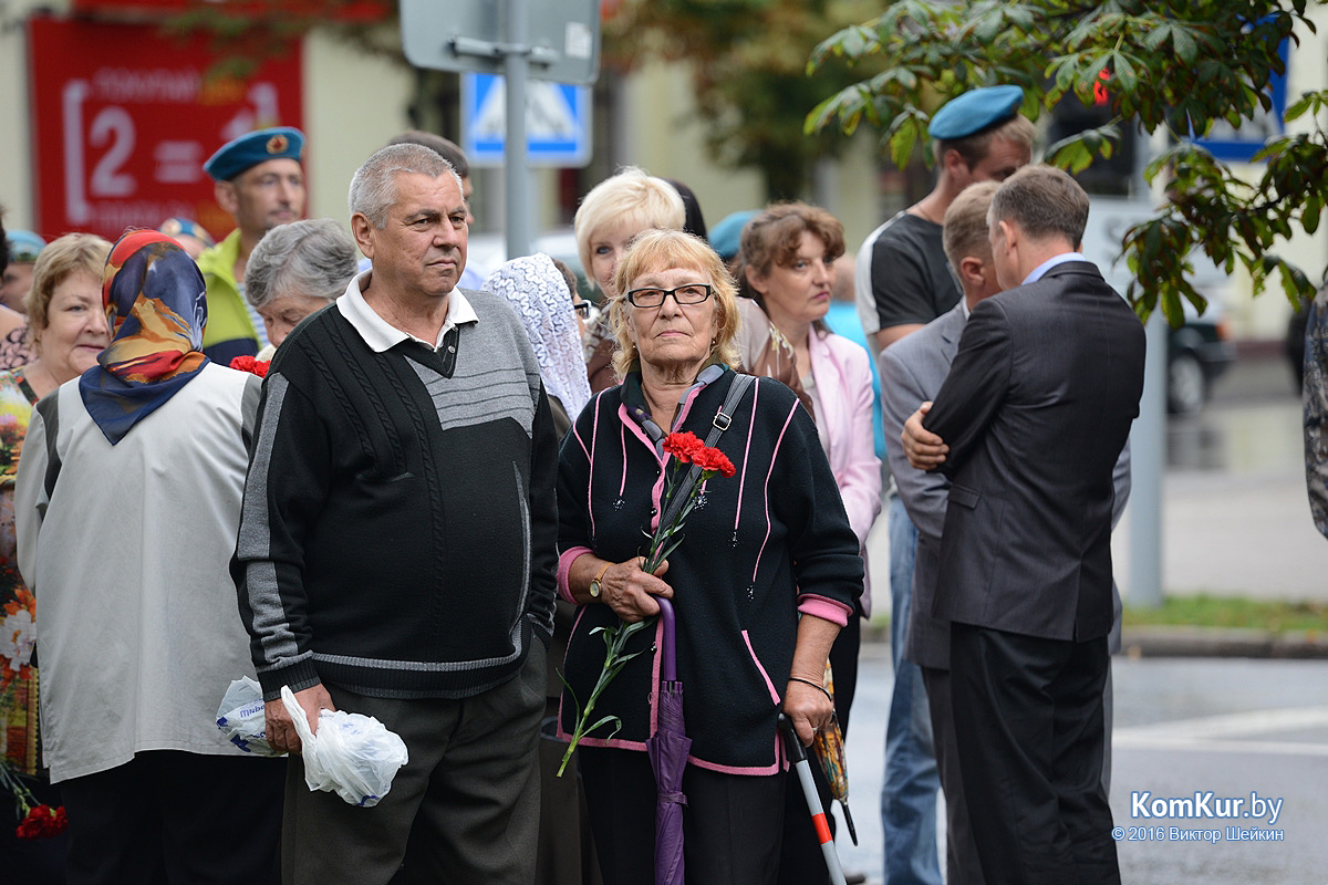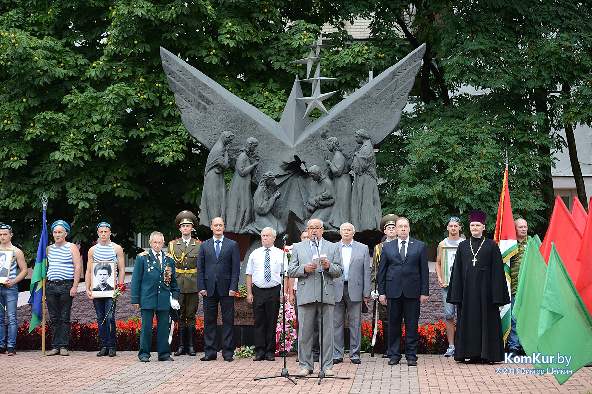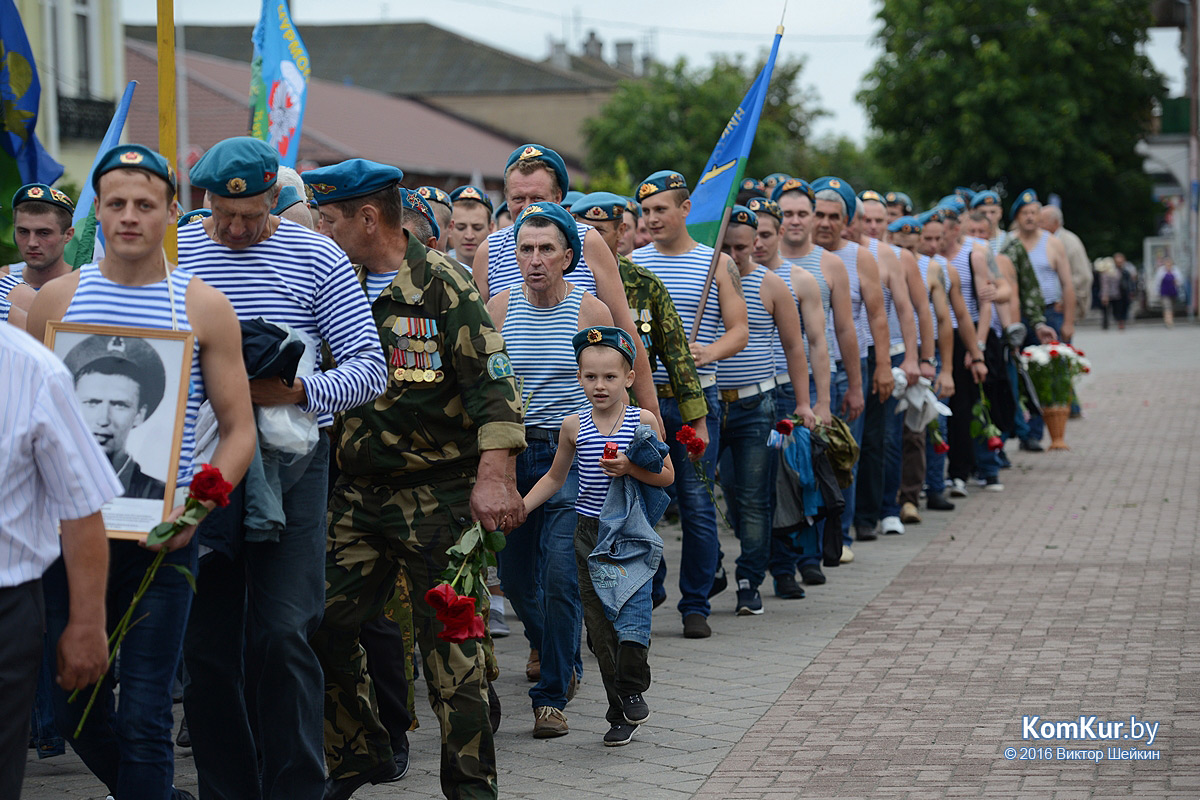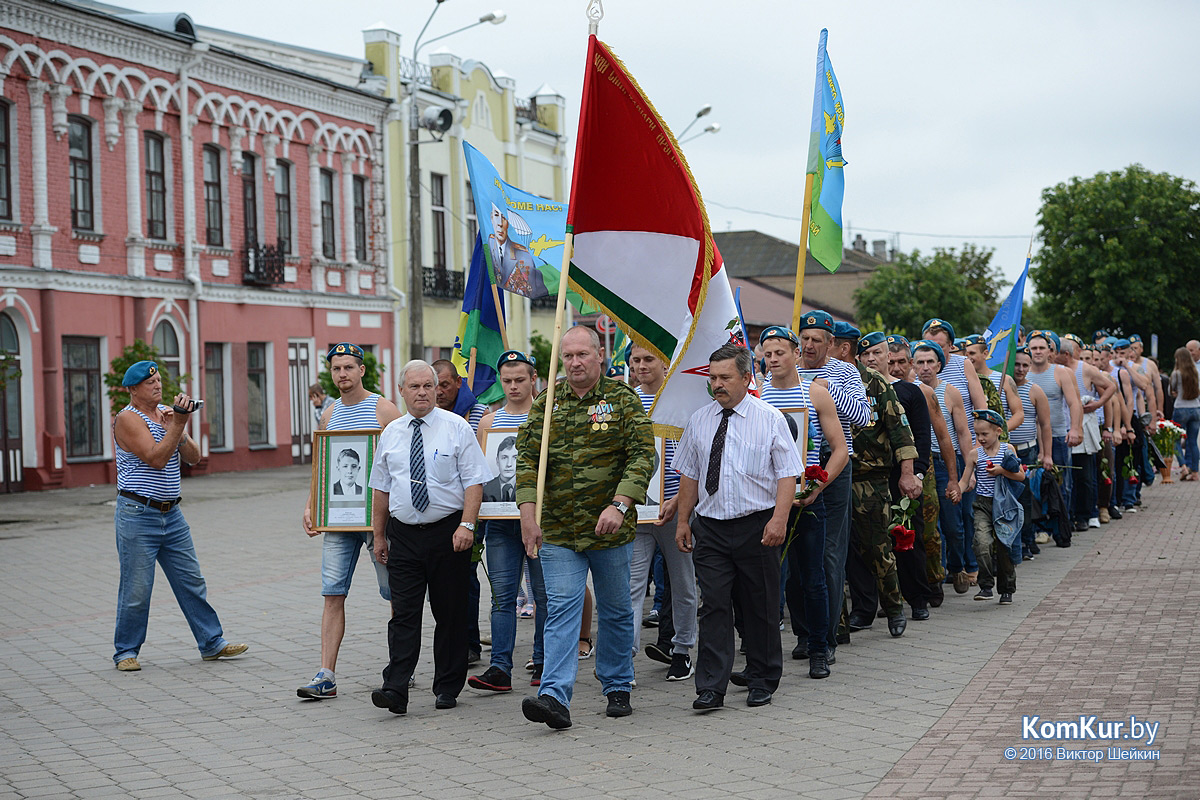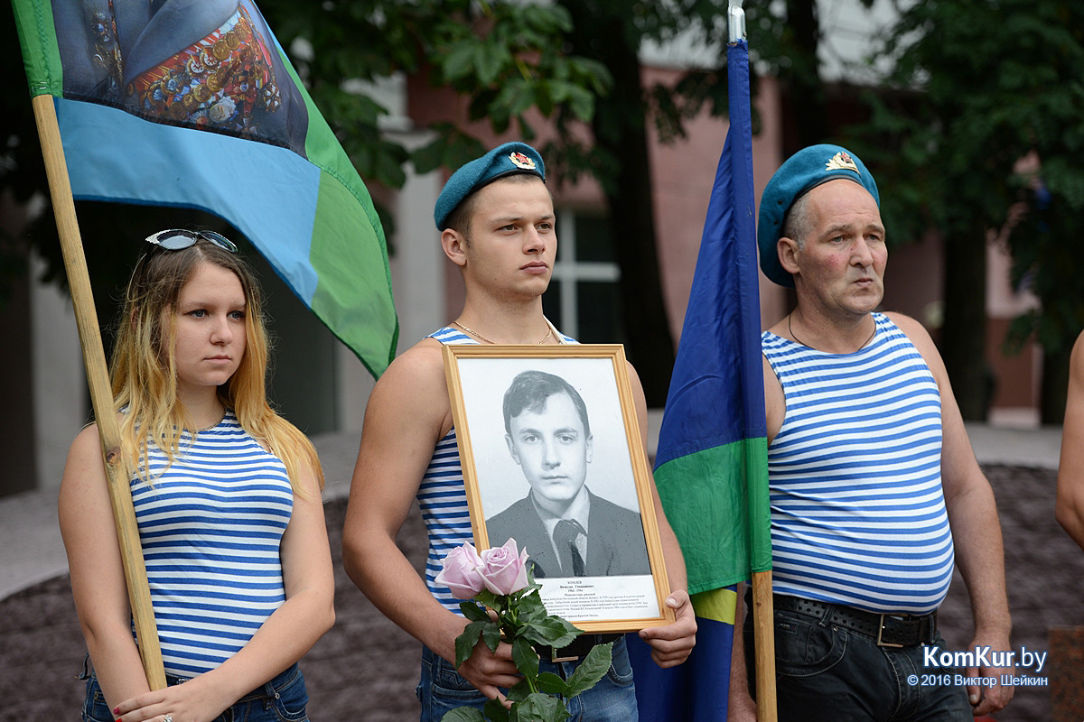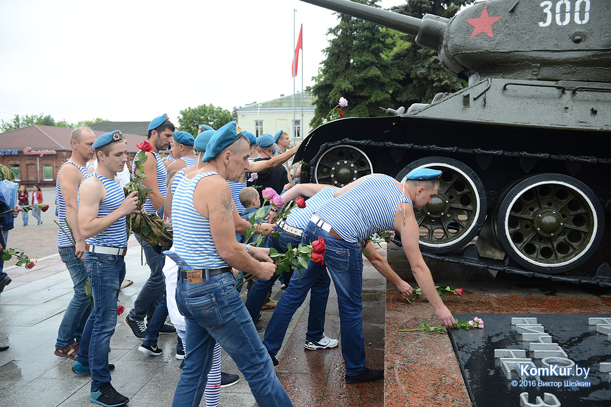 В 10 часов около сотни бойцов от убеленных сединами воинов-интернационалистов и до безусых парней стали в строй на площади Победы, чтобы возложить цветы защитникам Отечества в годы Великой Отечественной войны. После этого десантники отправились к памятнику воинам-интернационалистам на улице Социалистической, где прошел митинг, посвященный празднованию Дня ВДВ и ССО. Мужчин в тельняшках поздравил председатель БГООО «Белорусского союза ветеранов войны в Афганистане» Валерий Лебеденко: