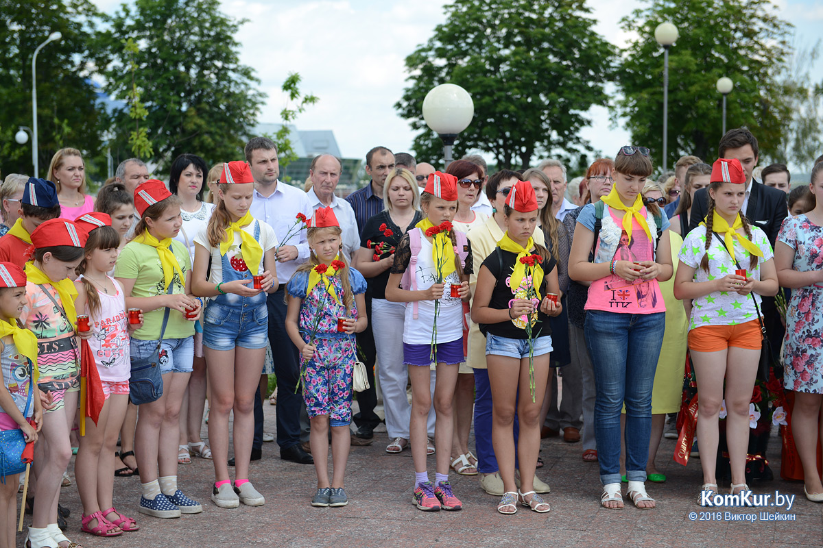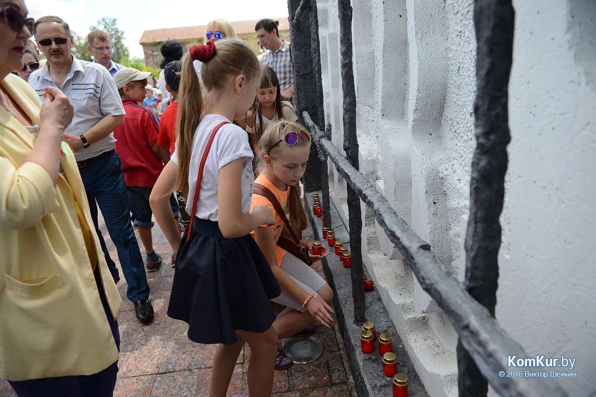 3 июля 2014 года на территории Бобруйской крепости, где в первый год Великой Отечественной войны размещался лагерь для военнопленных красноармейцев, открылся мемориальный комплекс жертвам фашизма. Сегодня к нему принесли цветы и зажгли памятные свечи дети и взрослые – все, кто благодарен павшим героям за мирное небо над головой.