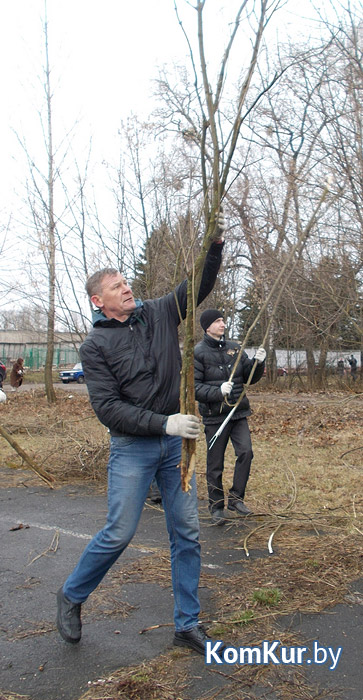– Зима наконец сдает свои позиции, это чувствуется. Самое время убрать и почистить то, что она после себя оставила. Мы попросили жителей города подключиться к общегородскому субботнику, и рады, что бобруйчане традиционно откликнулись на призыв навести порядок в нашем общем доме, – сказал Андрей Викторович, отложив на минуту бензопилу. – Деньги, заработанные в ходе субботника, будут направлены на продолжение строительства Молодежного парка, а также на сооружение двух новых объектов – въездного знака у нового моста и памятника ветеранам-авиаторам в авиагородке.