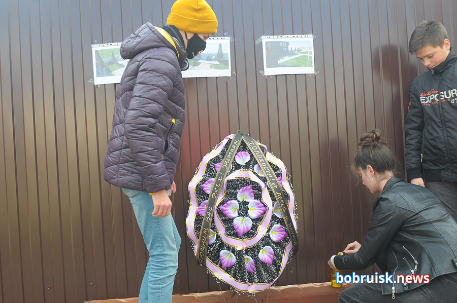 К ограждению поставили венок с надписью «Помним вас всех! Жертвам холокоста от детей и внуков». Зажгли свечу.