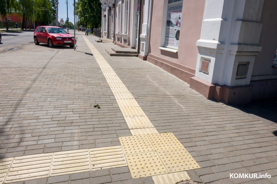 Бетонные бруски и желтые тактильные плиты для незрячих протянутся на километр с лишним. А с учетом обустройства «пешеходной мостовой» с двух сторон улицы, цифру можно смело умножать на два.