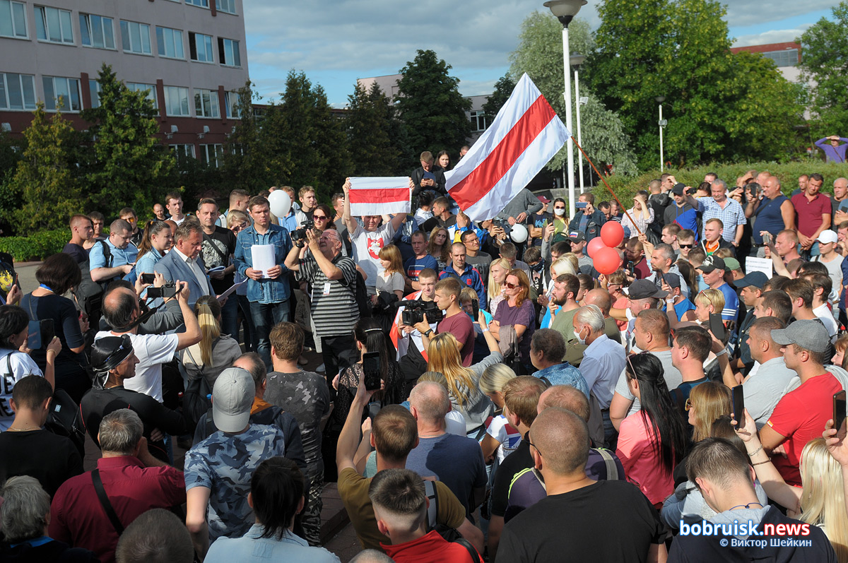 В 16.20 это были еще разрозненные группы, состоящие не только непосредственно из работников предприятия, но и из их родственников и просто тех, кто решил присоединиться к акции. Работников шинного комбината призывали несколько парней во главе со слесарем КИПиА Станиславом – они составили инициативную группу по сбору подписей под обращением.