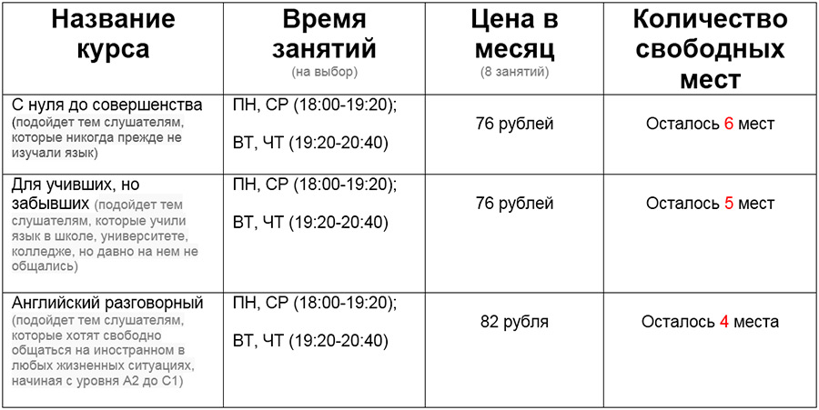 - 80% разговорной практики на занятиях