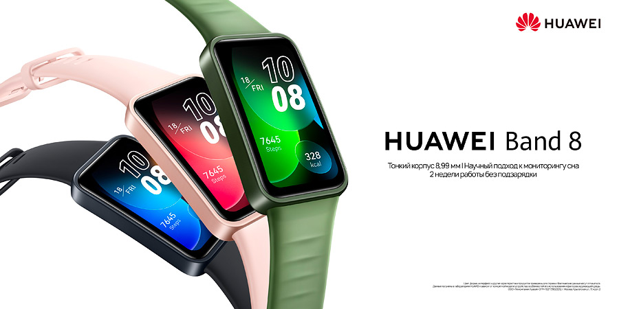 Смарт-браслет Huawei Band 8 представлен в трех оттенках: «изумрудно-зеленый», «полночный черный» и «розовая сакура». Их стоимость – 189 рублей. Смарт-браслет можно приобрести в крупных торговых сетях.