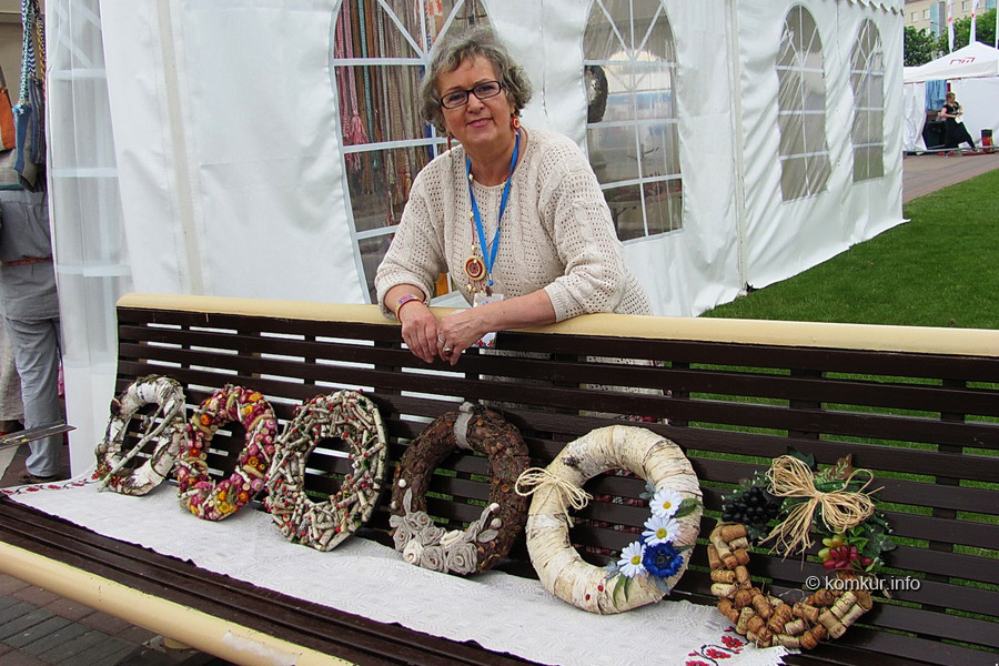 — Первыми моими покупателями была пара москвичей. Они купили очелье (повязка на лоб), которое я повязала мужчине, он в нем и пошел. Один венок уехал в Германию: «Брусничную поляну» приобрела пара, она — белоруска, он — немец. Обсуждали, куда его повесят дома. Много было русских и латышей. Молодые мужчины из Латвии оказались очень общительными, одеты были в цвета своего флага — бело-бордовые. Я сама к ним подошла, обратилась по-русски, они охотно откликнулись. Очень интересовались жизнью белорусов: почему не все мы разговариваем на родном языке? Не опасаемся ли ходить вечерами? Насчет вечерних прогулок мы их успокоили, а среди наших мастеров легко нашлись те, кто и в быту общается по-белорусски.