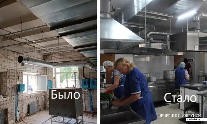 – Мы уже 10 лет занимаемся капитальными ремонтами и реконструкциями, в основном, жилфонда, а также промышленных предприятий в разных уголках Беларуси. Потому понимаем специфику этой работы и можем прогнозировать наперед, какие у нас будут трудности и делаем на них акцент, – комментирует, в свою очередь, руководитель ООО «Белэнергокомплекс» Александр Толстик. – В колледже перед нами стояли задачи: замена системы вентиляции и ремонт кухни, демонтаж плитки, монтаж новой плитки, потолки, электроснабжение новое… Думаю, минимум лет на 20 нашей вентиляционной системы для МГЭПТК хватит. Там приточно-вытяжная система предусмотрена – она сделана в помещении, где хранятся продукты, для поддержания микроклимата. В самом обеденном зале – новая система вытяжной вентиляции. Все выполнено с учетом современных санитарных требований и норм пожарной безопасности: установлены противопожарные клапаны, выполнена огнезащита воздуховодов.
