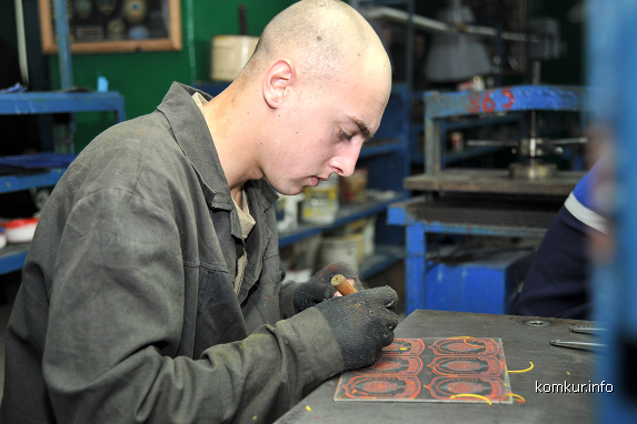 Замполит колонии Олег Заплитный, знакомя нас с производством, рассказал, что работу здесь стараются по возможности найти всем. Промзона солидная: есть швейное предприятие, цех деревообработки, участок по изготовлению военной атрибутики. Администрация держит контакт с «Беларусьрезинотехникой», «Агромашем», «Химволокном» и даже МАЗом, которые здорово в этом вопросе подсобляют, хотя самим непросто.