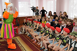Небольшой концерт для гостей из столицы 9 февраля прошел трогательно и забавно. А после него от «Юного спасателя» и Могилевского областного управления МЧС малышам был устроен ответный концерт с конкурсами и сладкими призами — подарками от министра.