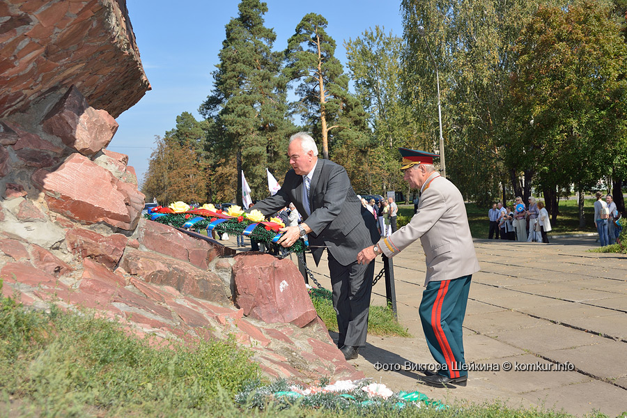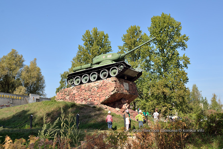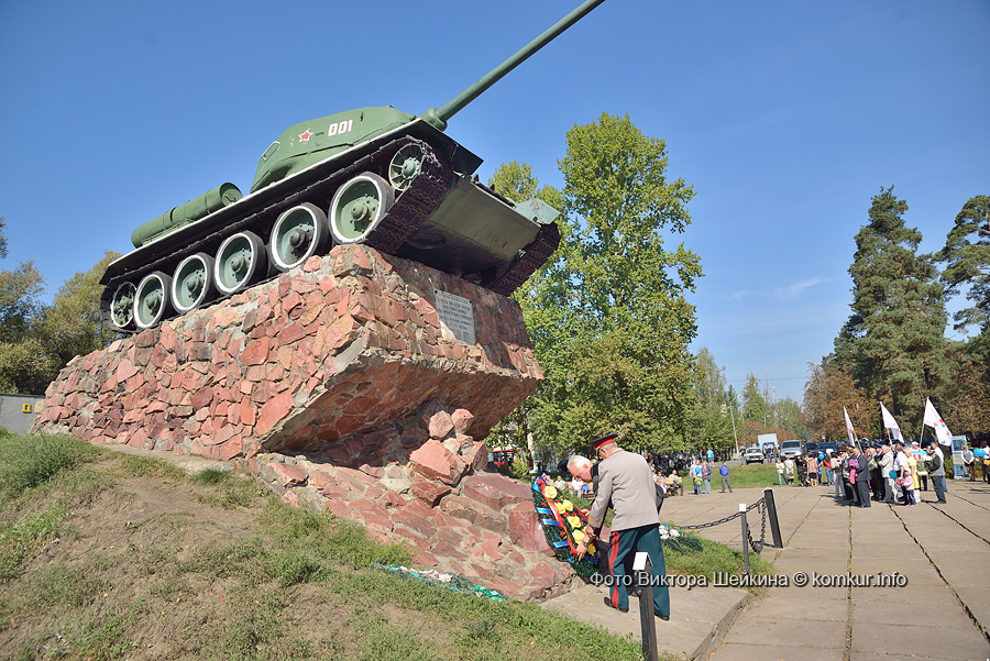 У стелы воинам-днепровцам и у легендарного Т-34 состоялось возложение венков, прошел торжественный митинг, посвященный 68-й годовщине создания танковых войск.
