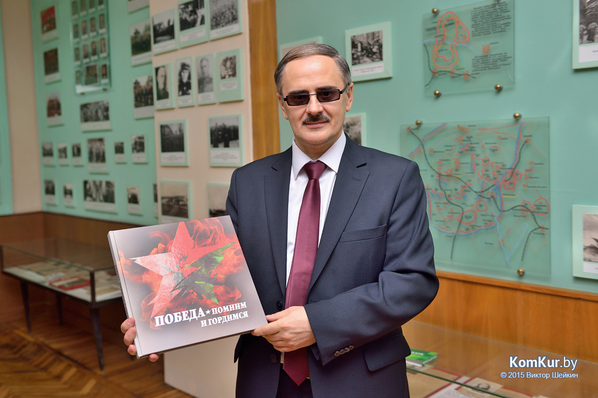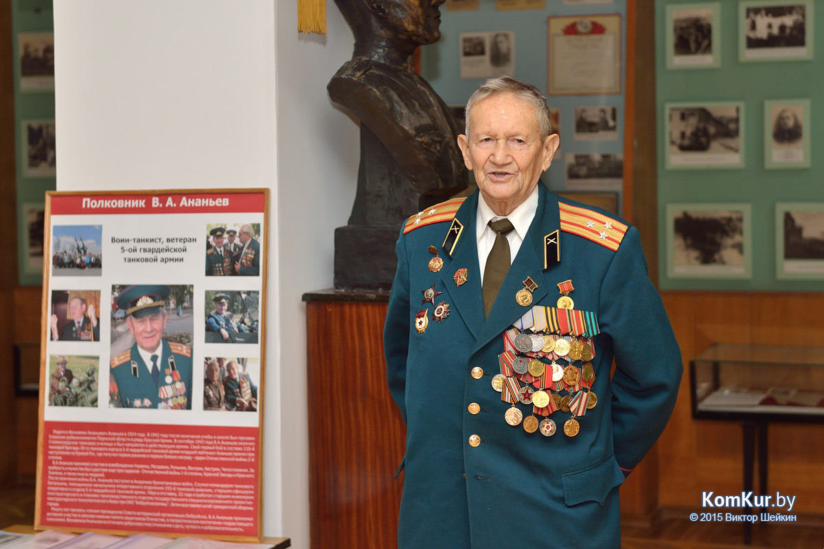 К старым экспонатам добавились новые. Например, фотоальбом, посвященный 70-летию Великой Победы, выпущенный при поддержке «Беларусбанка», куда вошли уникальные снимки фотохроники БелТА. Появились в экспозиции и новые стенды, посвященные легендарному танкисту-бобруйчанину Вениамину Ананьевичу Ананьеву.