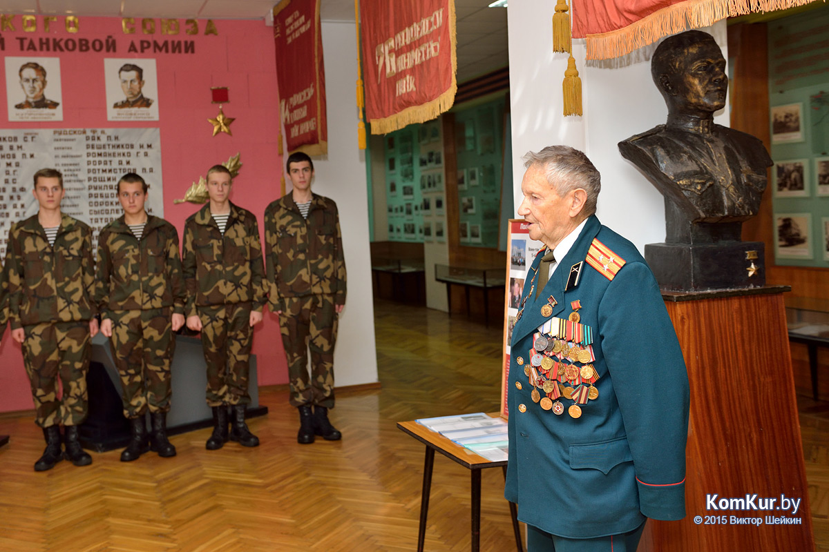 Здесь состоялась встреча студентов Бобруйского филиала БГЭУ и кадетов СШ № 27 с ветераном Великой Отечественной, председателем Бобруйского городского Совета ветеранов-фронтовиков 5-й гвардейской Краснознаменной танковой армии полковником С. З. Серебренниковым и ветераном 193-й танковой дивизии Ю. С. Савиным. Полковник Семен Залманович и гвардии старшина Юрий Степанович рассказали молодежи о своем детстве и фронтовой молодости.