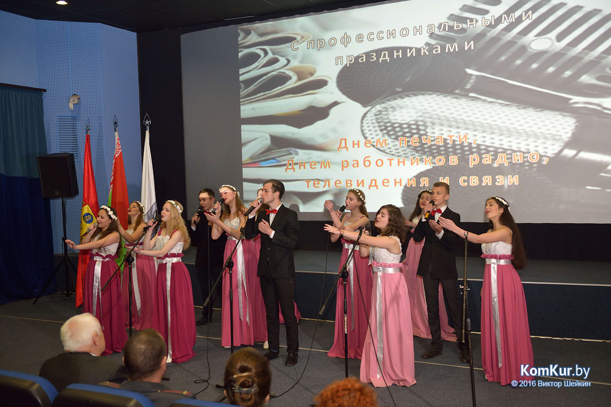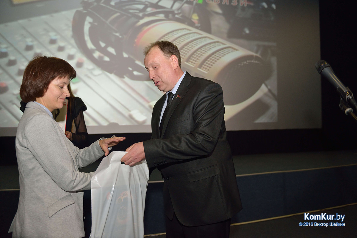 5 мая в малом зале кинотеатра «Товарищ» прошло торжественное мероприятие, посвященное сразу двум профессиональным праздникам работников средств массовой информации – Дню печати и Дню радио, телевидения и связи. Работников городских СМИ поздравили глава городского Совета депутатов Михаил Викторович Желудов, заместитель председателя горисполкома Александр Васильевич Маркачев, начальник управления образования, спорта и туризма Бобруйского горисполкома Ирина Николаевна Рынейская, представители УВД горисполкома, БГРОЧС, БЦБ и другие официальные лица. Поздравления, как водится, предваряли вручение наград и подарков за плодотворное сотрудничество и профессиональное мастерство.