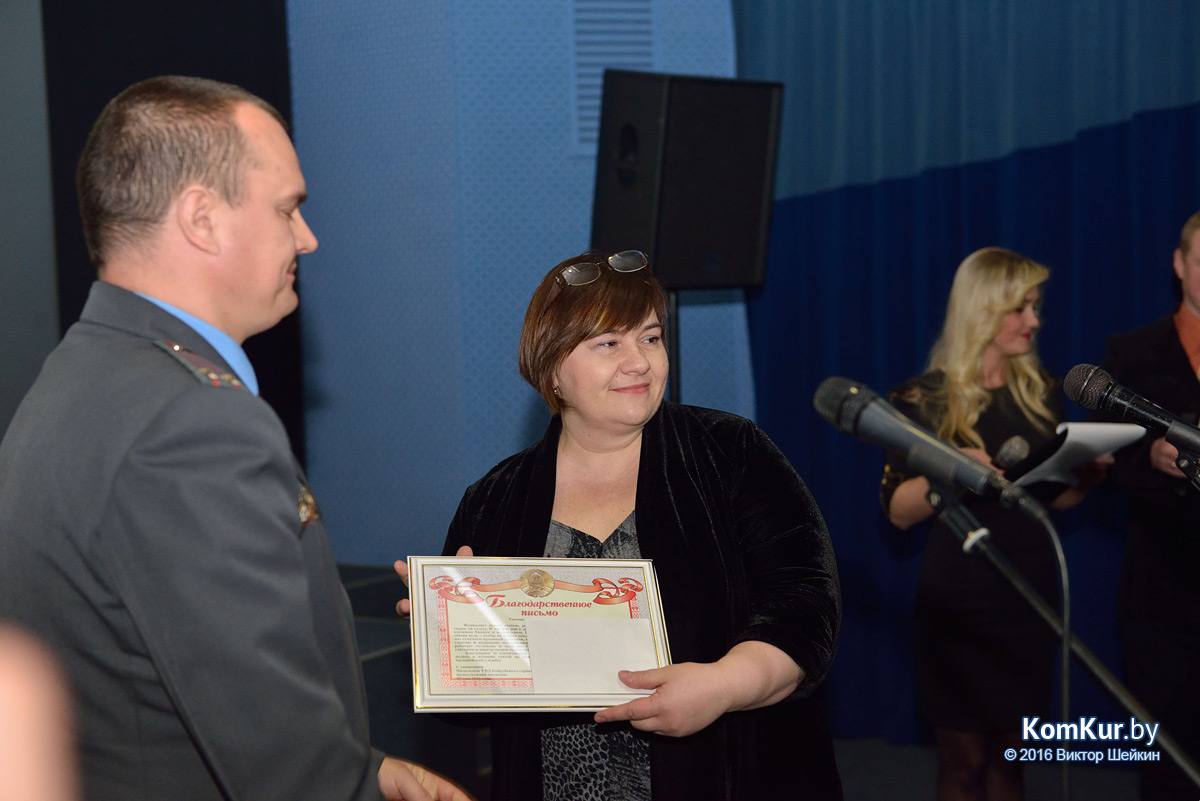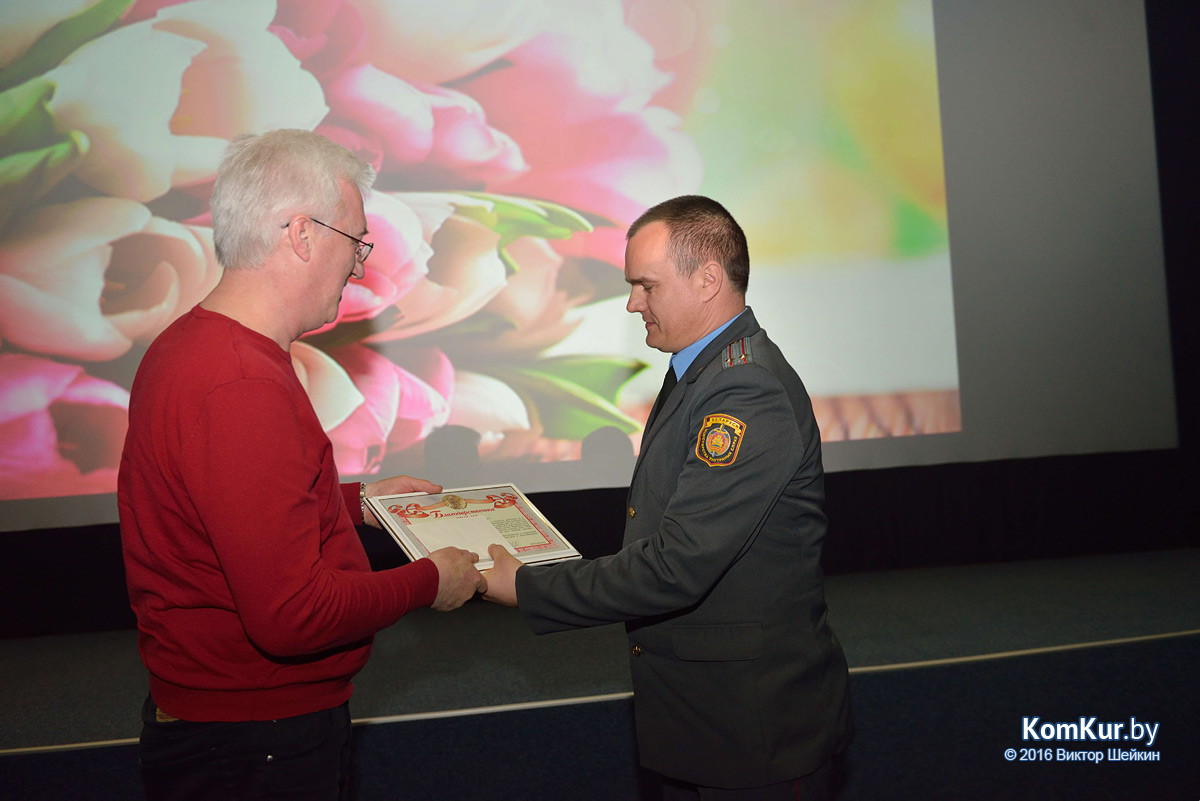 В числе награжденных были и представители «Коммерческого курьера». Ценный подарок – электрочайник и набор зефира – получила из рук Михаила Викторовича Желудова главный редактор издания Татьяна Ивановна Новик. Заместитель начальника УВД по идеологической работе и кадровому обеспечению Василий Прокопович Савельев вручил диплом и денежную премию редактору выпуска Андрею Владимировичу Чижику. Грамотой и подарком от Бобруйской епархии был награжден заведующий отделом иллюстраций Виктор Николаевич Шейкин.