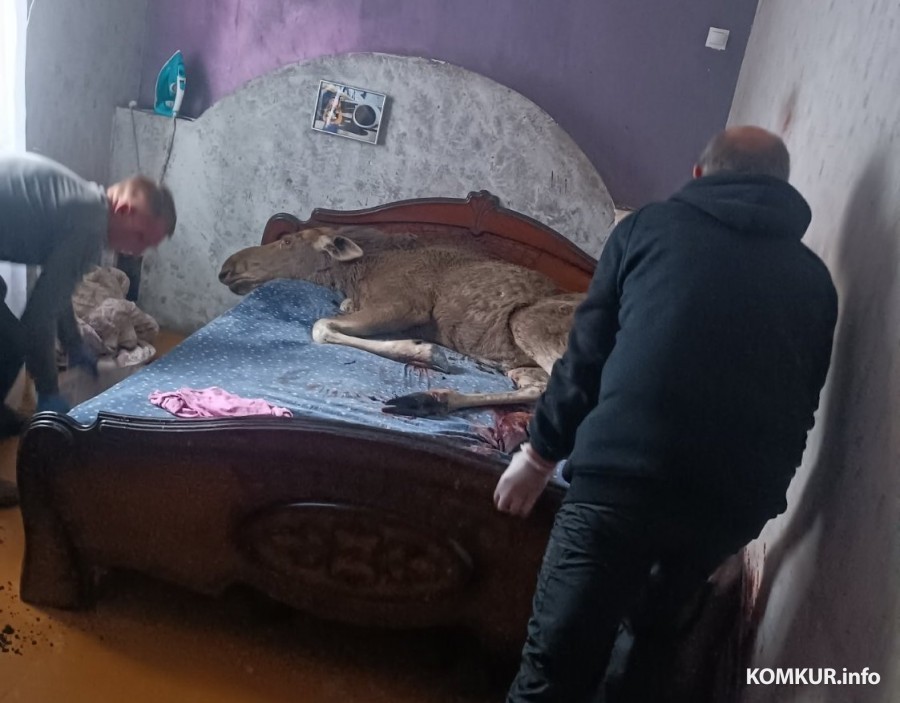 «Этого лося я еще увидел по пути из магазина, но подумать и не мог, что через несколько минут он окажется на моей кровати», – говорит бобруйчанин Сергей Воронич. Это к нему воскресным утром забрел в гости крупный лесной житель.