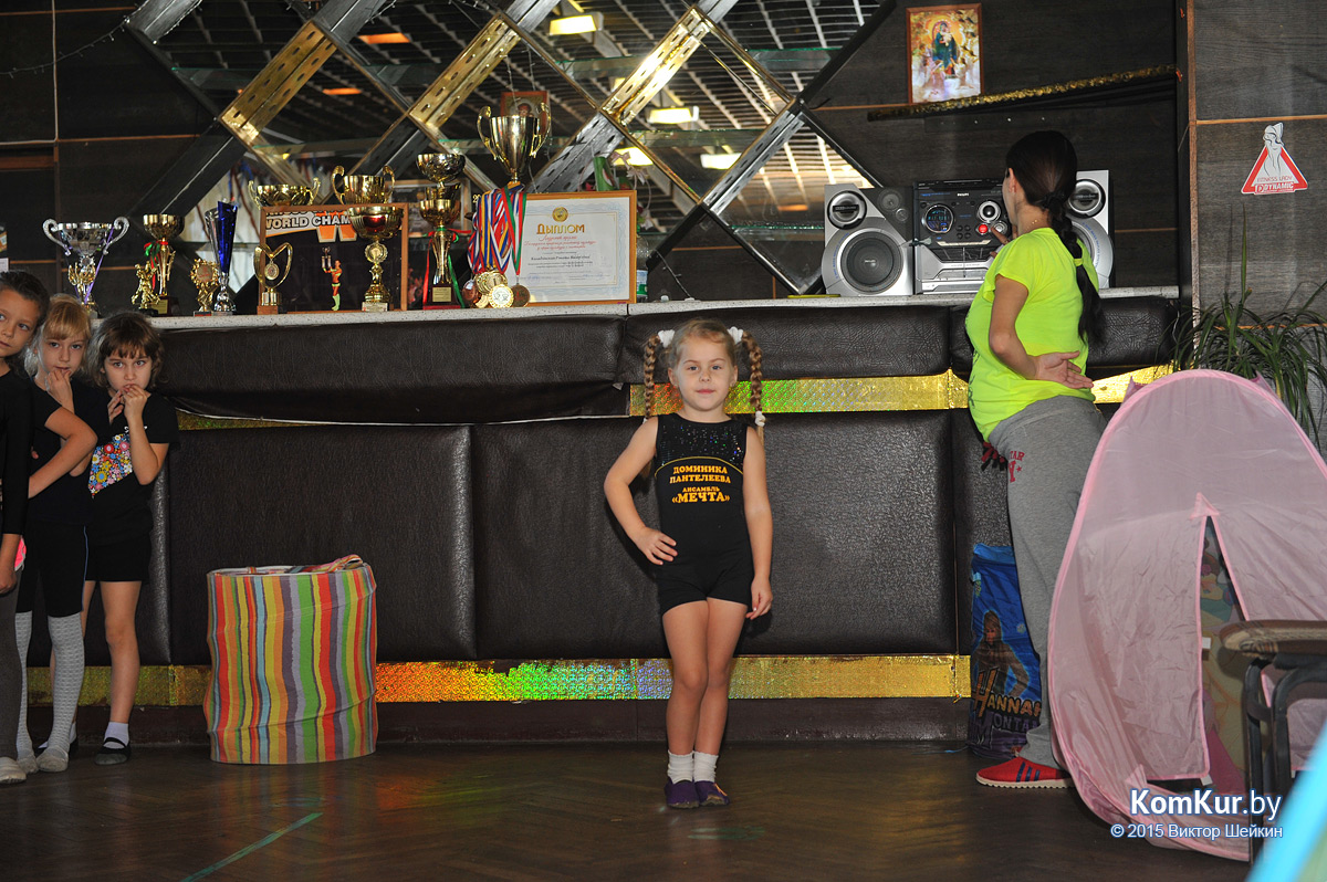 Обновленный, отремонтированный холл бывшего ДК «ФанДОК» встретил нас веселыми голосами шустрых девчонок шести-восьми лет, которые еще до прихода тренеров демонстрировали друг другу акробатические элементы, а их родители скромно сидели на банкетках. Но как только появились Рената Колодинская и Сергей Пантелеев с их уже ставшей знаменитой четырехлетней дочерью Доминикой, около 30 присутствовавших девочек заняли свои места в зале для танцев…
