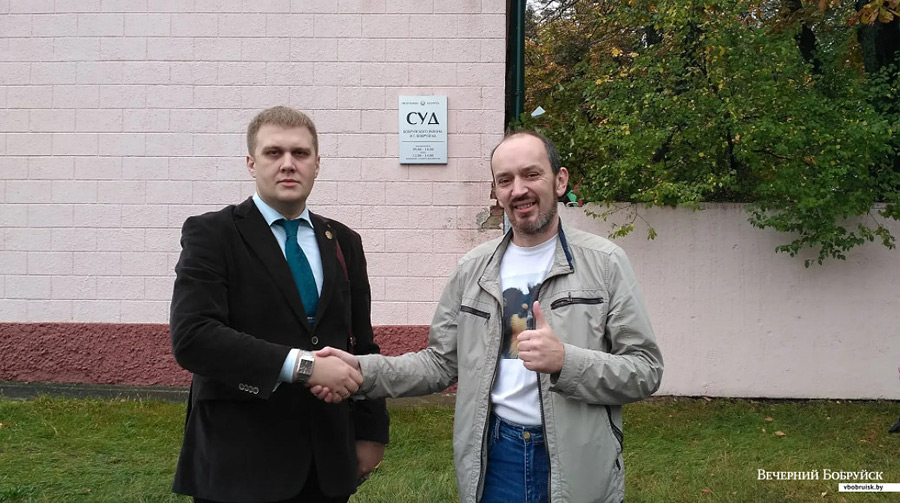 В пятницу в 9.30 к зданию суда Бобруйского района и Бобруйска на улице Тухачевского пришли сам обвиняемый, его адвокат Александр Рыжков, свидетели по делу, а также группа поддержки.