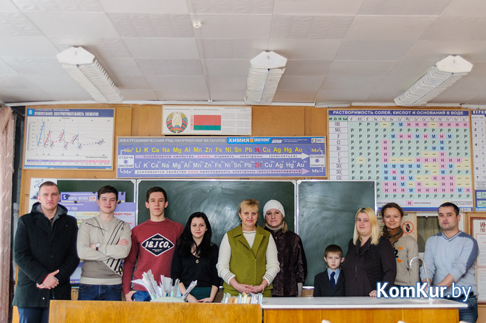 Третий этаж. В кабинете химии семь человек разного возраста. Две выпускницы пришли с детьми. Преподаватель Антонина Шаршавицкая за 15 минут пытается узнать как можно больше о жизни бывших учеников.