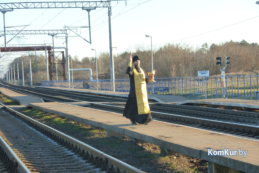 Во вторник, 8 декабря, на остановочном пункте «Киселевичи» молебен о здравии всех странствующих прочитал настоятель Свято-Духовского храма отец Александр. Место совершения молитвы было выбрано не случайно: три из четырех железнодорожных трагедий этого года случились именно здесь. Батюшка обошел пути в пределах остановочного пункта, совершил все положенные обряды и окропил стальные нити святой водой.