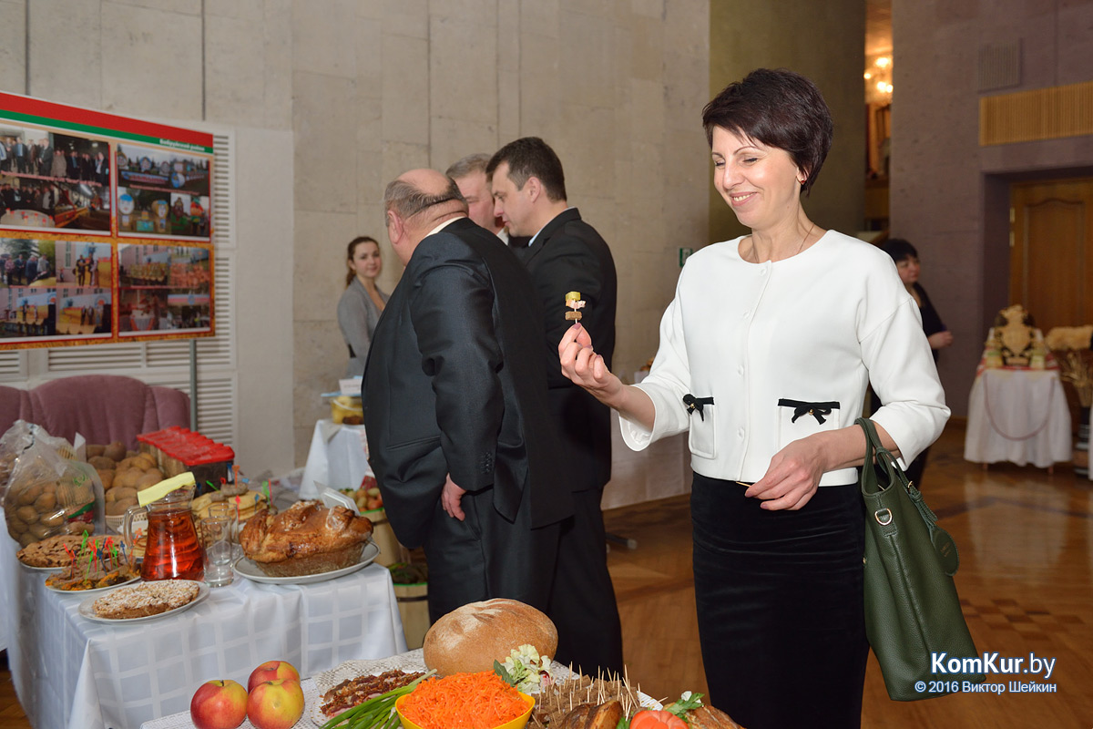 Торжеству предшествовали выставки достижений мастеров-умельцев Бобруйского района, творческих работ учреждений социальной сферы. Немалый интерес у виновников праздника и гостей вызвала презентация продукции предприятий и организаций агропромышленного комплекса и перерабатывающей промышленности Бобруйщины. Вкусности и разносолы расходились на ура.