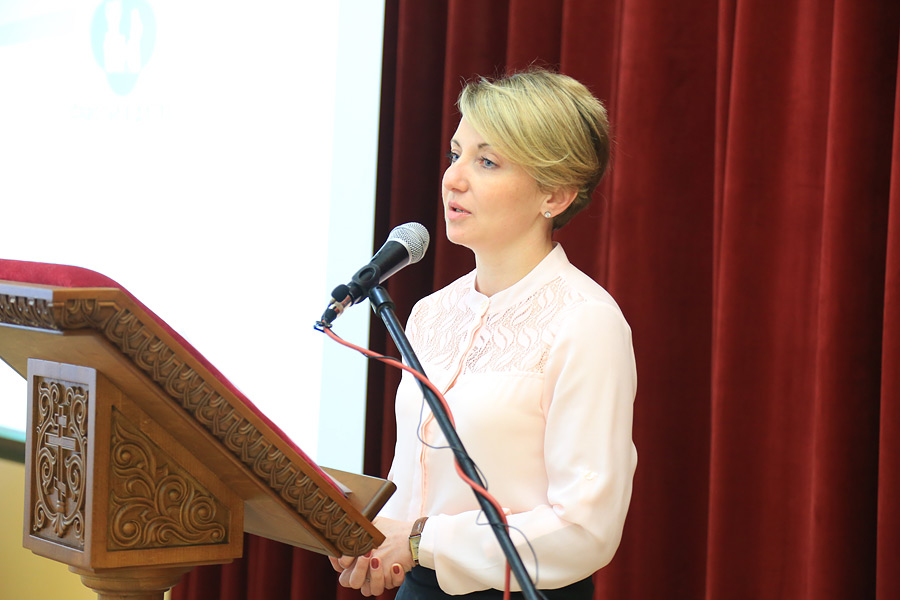 Директор Института управленческих кадров Академии управления при Президенте Республики Беларусь, кандидат экономических наук, доцент Анна Иосифовна Ящук выступила с докладом-презентацией «Семейная политика – приоритет развития Белорусского государства».