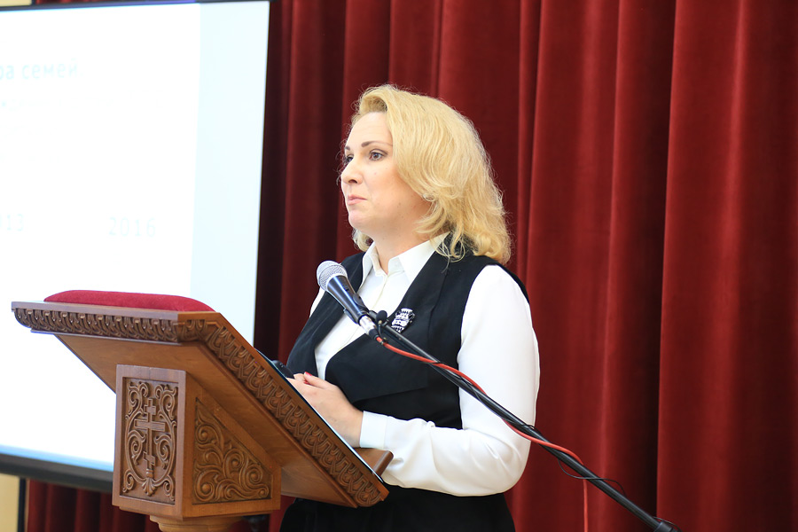 «От состояния семьи зависит состояние государства. Чем выше духовная культура в семье, чем духовно богаче общество, — отметила выступающая. — И наоборот, экономическое благополучие семьи зависит от экономического состояния государства». В своём выступлении она рассказала об экономическом стимулировании рождения второго и последующего детей и видах помощи, оказываемых государством семьям с детьми.