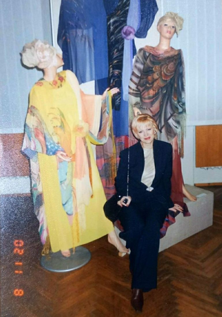 – С мужем мы разошлись, – продолжает рассказ собеседница, – я стала активно работать, участвовать в выставках – от городских до международных, в 90-м вступила в Союз художников. Обошла весь город, подвалы всех домоуправлений – нашла место под мастерскую. Работала с детьми, занималась акварелью и гобеленом. И батиком – он схож с акварелью, такие же переливы цвета, как мне нравятся, только на ткани. В батике у меня есть авторские техники, я делаю объемный, рельефный. С 89-го работала на комбинате «Мастацтва», в художественно-творческих мастерских, было много заказов по области.