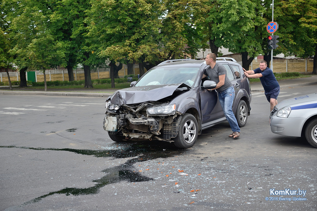 Как сообщили в дежурной части ГАИ оба водителя ехали на разрешающий сигнал светофора – водитель Mitsubishi Outlander совершал поворот налево и не уступил дорогу микроавтобусу. Пострадавших нет.