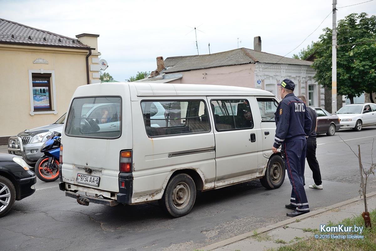 Утром в среду, 6 июля, на перекрестке улиц Бахарова и Пушкина произошло ДТП: кроссовер и микроавтобус марки Mitsubishi не смогли разминуться на перекрестке.