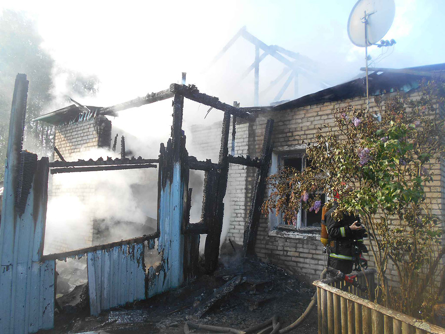 Когда подразделения МЧС прибыли на место ЧП, двухквартирный дом горел открытым пламенем. Спасатели справились с огнем. В результате пожара повреждены кровля, веранда, имущество в квартире №1.
