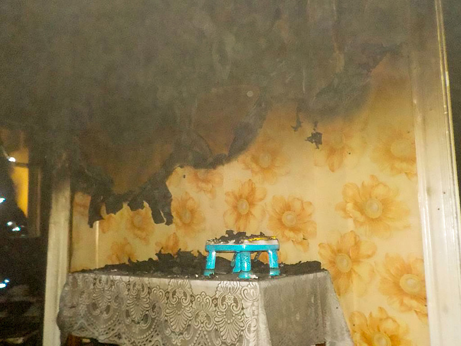 Пожар быстро ликвидировали, однако огонь успел повредить часть имущества и стен в одной из комнат, из-за сильного задымления закопчены потолки во всем доме.
