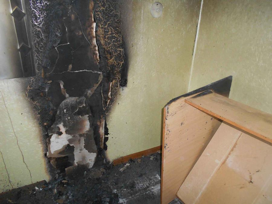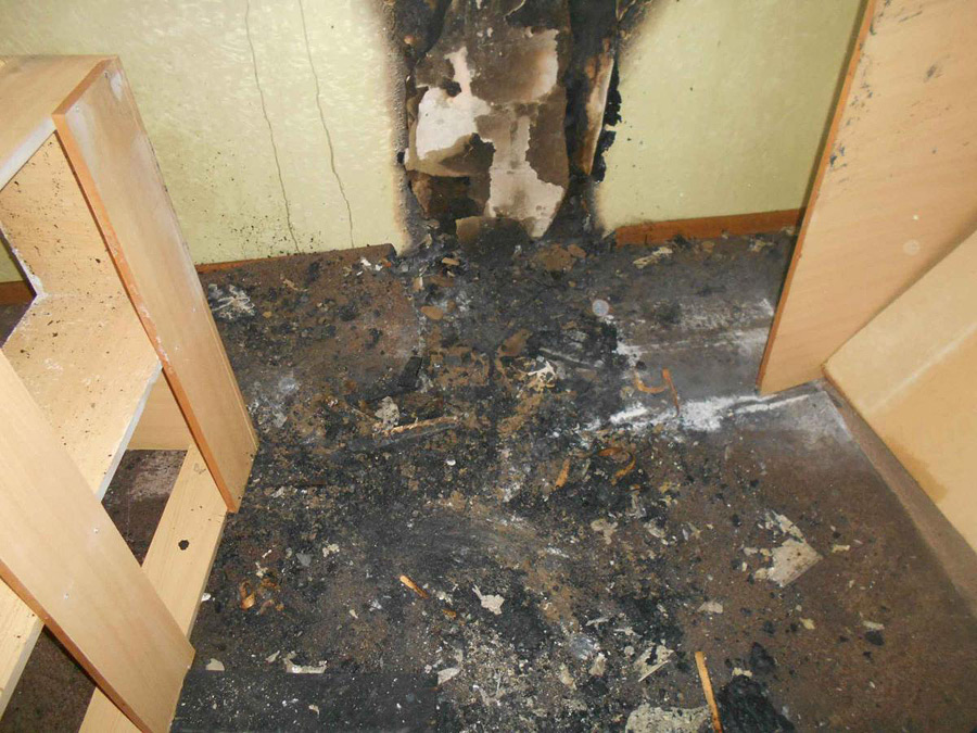 Прибывшие спасатели пожар потушили. Огонь повредил имущество в комнате, закоптил стены и потолок.