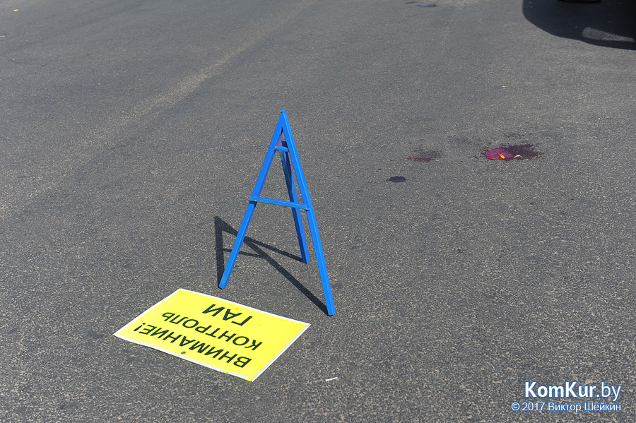 Кровь на асфальте и патрульный автомобиль ГАИ. Во вторник, 15 августа, на улице Новошоссейной автомобиль «Ауди-100» сбил пожилую бобруйчанку. ДТП случилось около десяти утра.