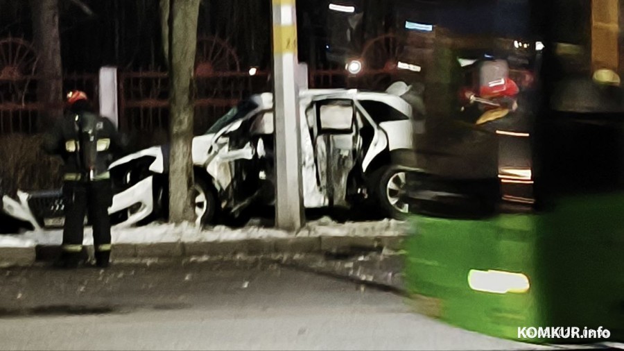 Фото и видео с места аварии поделились подписчики телеграм-канала «Новости Бобруйска». На кадрах видно, что автомобиль сильно разбит.