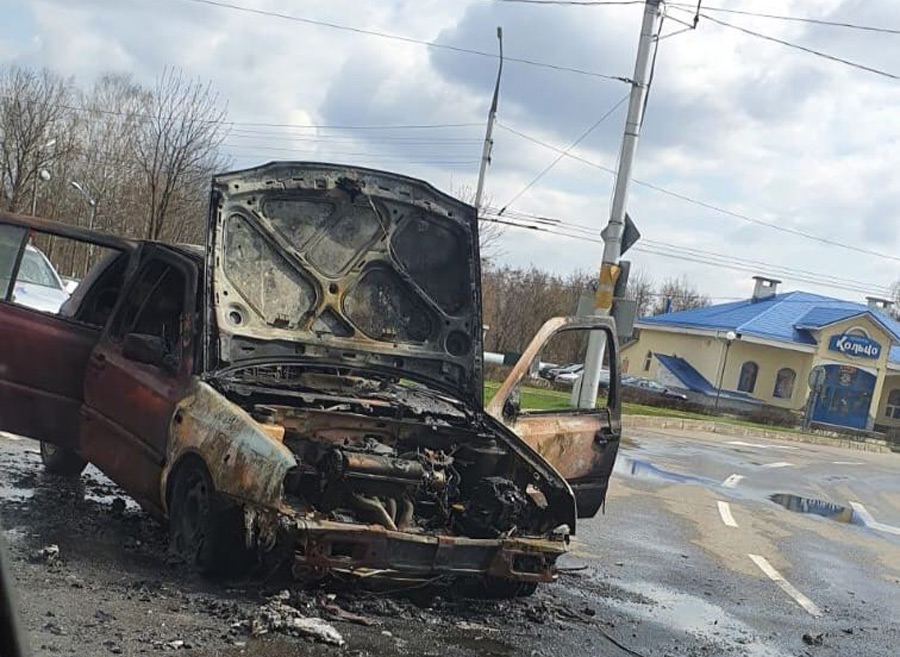 Около часа дня на пересечении улиц Минской и Шинной загорелся автомобиль. Огонь запылал под капотом старенького «Гольфа».