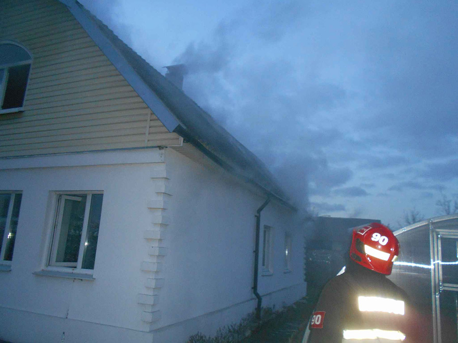 Прибывшие пожарные быстро справились с очагом возгорания. В результате повреждено перекрытие между первым и вторым этажом, имущество в доме, закопчены стены и потолок на втором этаже.
