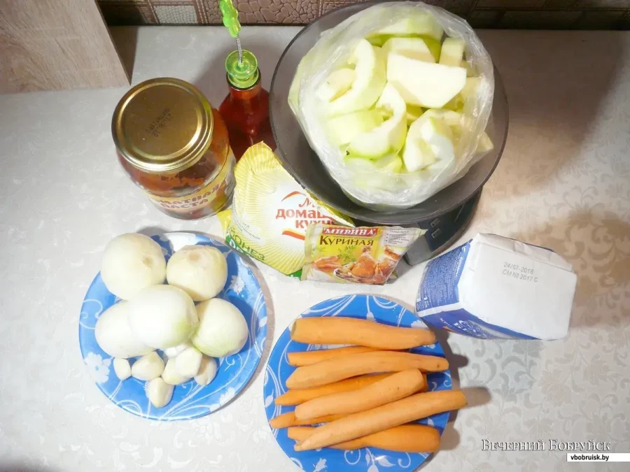 - Кабачки – 5 кг (очищенных – без кожицы и косточек);