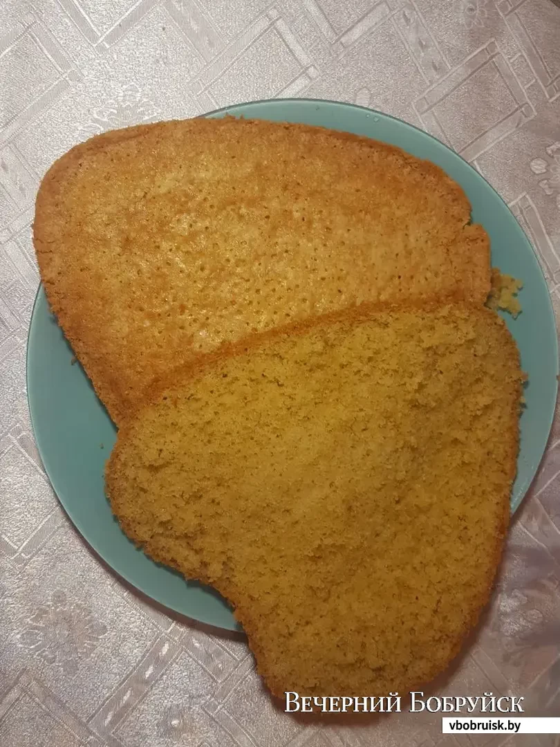 5. Разрезаем его ножом на 2-3 равных коржа;