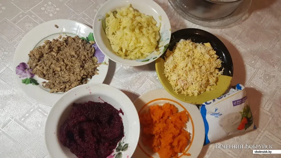 1. Все овощи и яйца отварить, остудить, очистить.