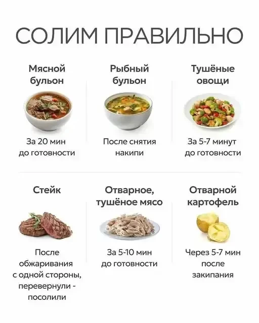 От того, сколько и когда солить, зависит и вкус приготовленного блюда, и польза ингредиентов, в него входящих, и внешний вид. Поэтому – солим правильно.
