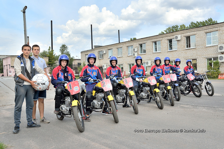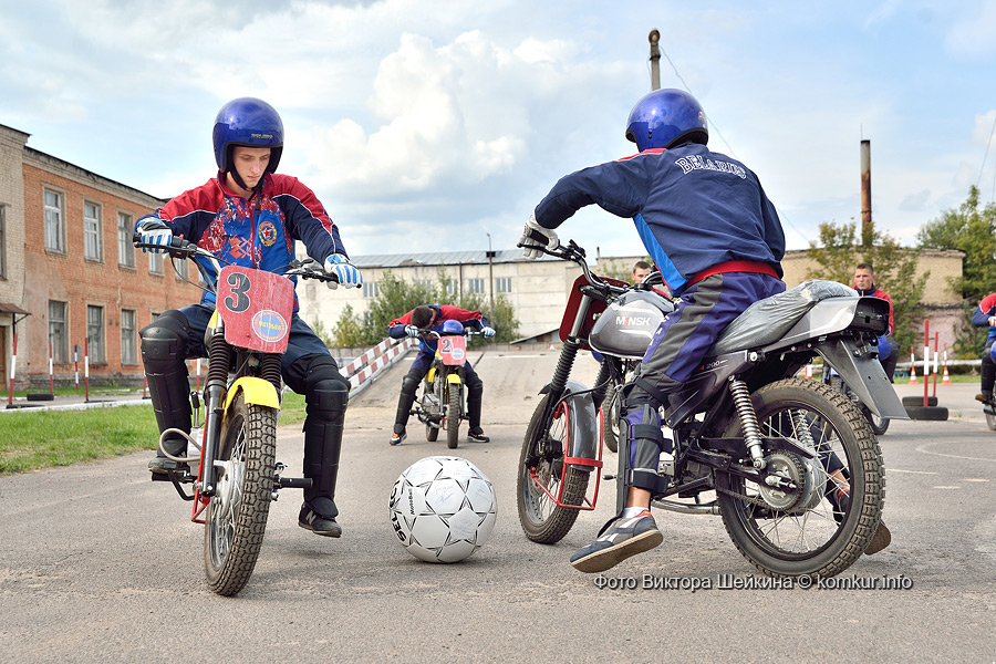 Парни эти — учащиеся бобруйского строительного колледжа. Вопрос отбора в создаваемую мотобольную дружину ДОСААФовцы разрулили просто: раз во дворе колледжа расположен мотобольный стадион, на котором придется тренироваться — значит, «аборигенам» и руль в руки.