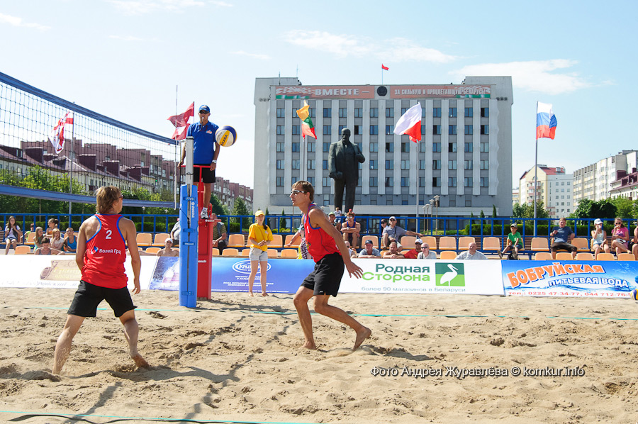 Бобруйские волейболисты-пляжники, к сожалению, к тому моменту уже завершили выступления. Пара аборигенов Александр Детков и Евгений Вишневский одержали две победы и уступили столько же раз, и в итоге поделили седьмое-восьмое места. Александр Смирнов, выступавший, как сейчас модно говорить, в тандеме с минчанином Александром Кузьменей, оказались в числе дуэтов, расположившихся на местах с девятого по 12-е.