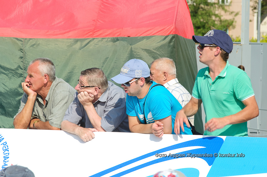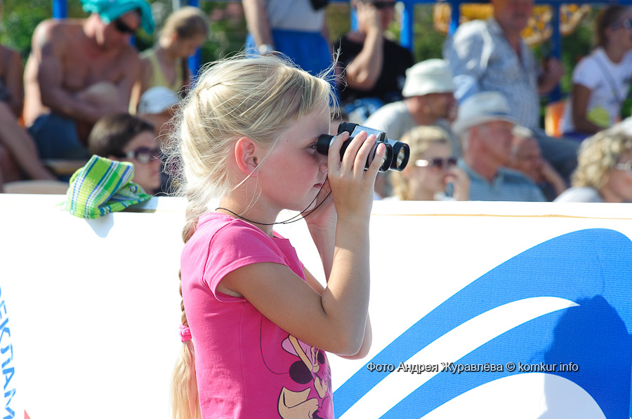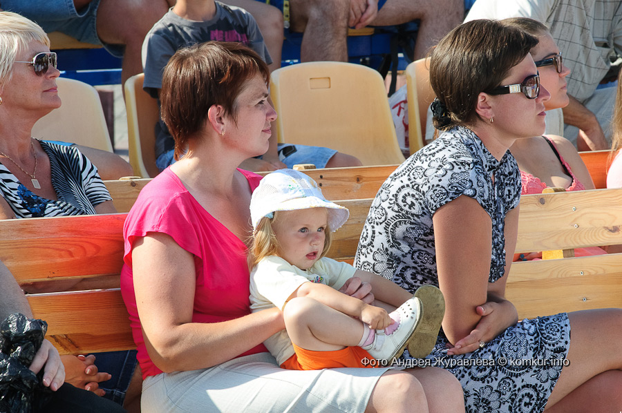 Поначалу и правда нули на «зайчиках» атлетам было считать гораздо труднее, чем зрителей на трибунах: за минусом соперников и судей трибуны на пляже «оседлали» немногочисленные отдыхающие, а на площади — фланирующие без определенной цели прохожие да детишки-каникуляры. А в воскресенье утром негостеприимно брызнувший дождик на какой-то момент даже сократил количество болельщиков до одного — большого и бронзового. Но погода вовремя одумалась, и решающие баталии проходили уже при полном аншлаге.