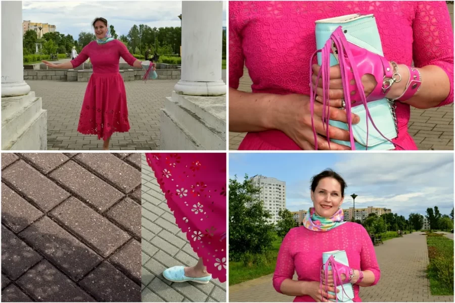 – На мой взгляд, этот аксессуар цветов бирюза, фуксия и крем-брюле удачно «собрал» воедино весь образ, – считает Надя.