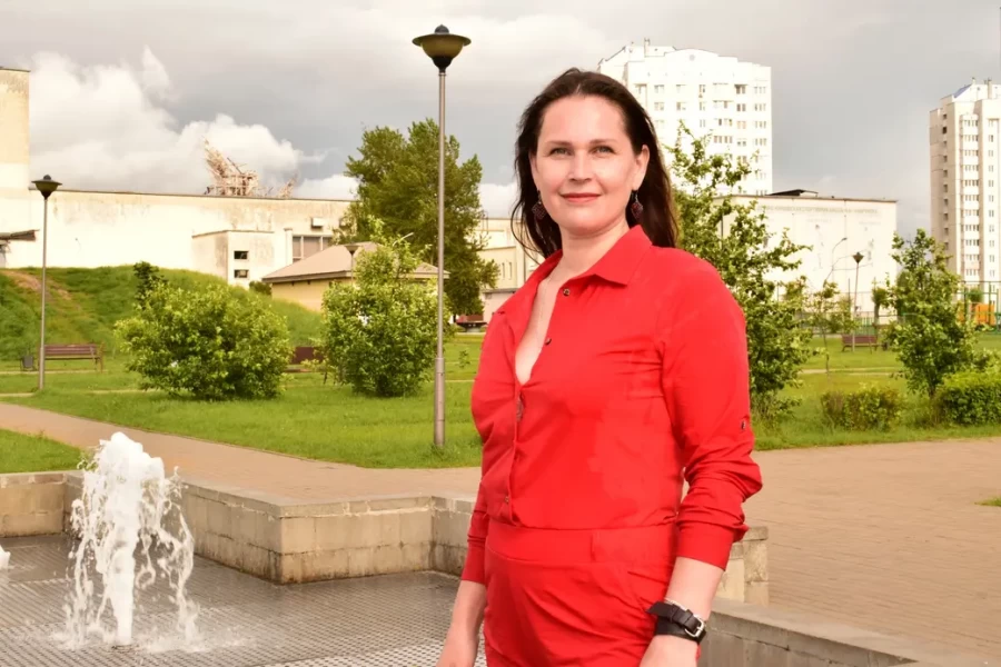 – Образ лаконичный, яркий, смелый. В нем можно и на деловую встречу, и в фонтане искупаться! – улыбается Надя (такая идея у нашей героини родилась во время фотосессии у фонтанов в молодежном парке – авт.). – Красный цвет говорит об уверенности в себе. Когда мне нужно молча сказать о том, что я буду настойчиво добиваться своего, я использую этот образ.